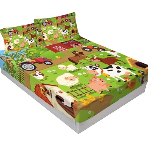Cow Size Fitted Sheets for Sheets Set Girls and Boys Bedding Full Farm Animal