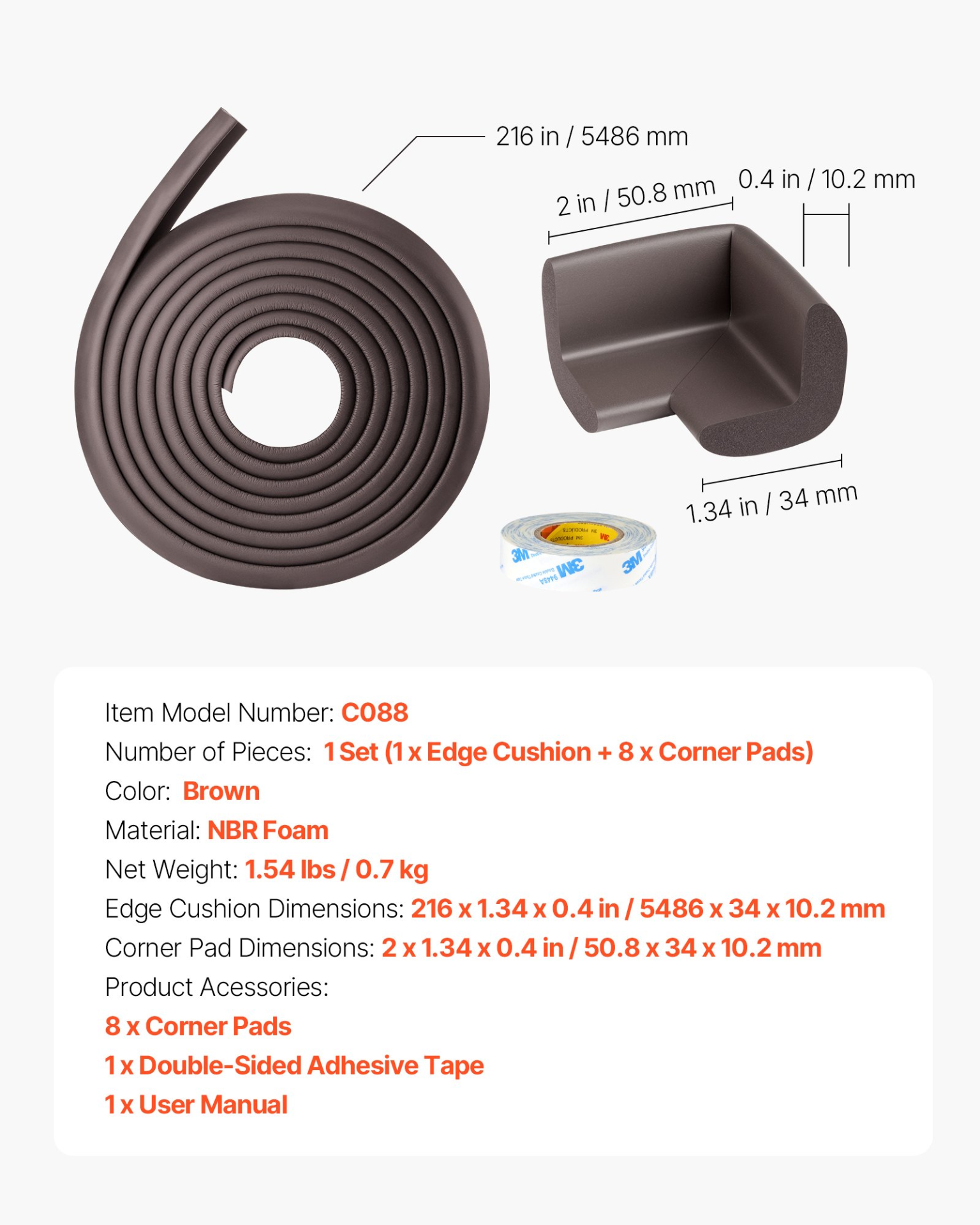 Baby Proofing Edge Corner Protector 18 ft Edge Cushion 8 Corner Pads Foam