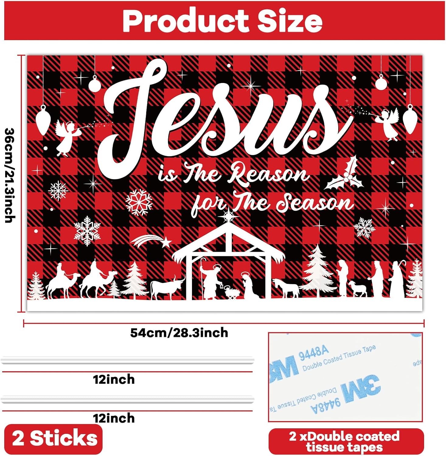 Jesus Is The Reason for Season Yard Sign with LED Lights Christmas red