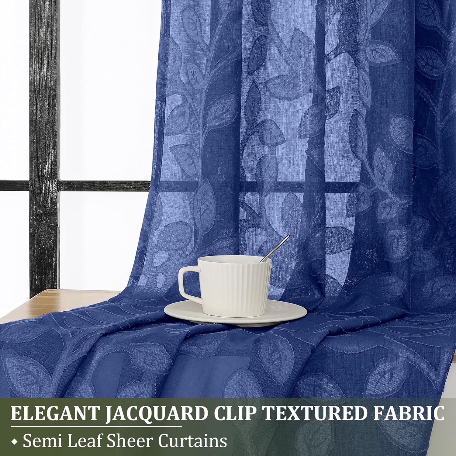 OVZME Dusty Blue Sheer Kitchen Curtains 42 42W x 36L Pack of 2 ,