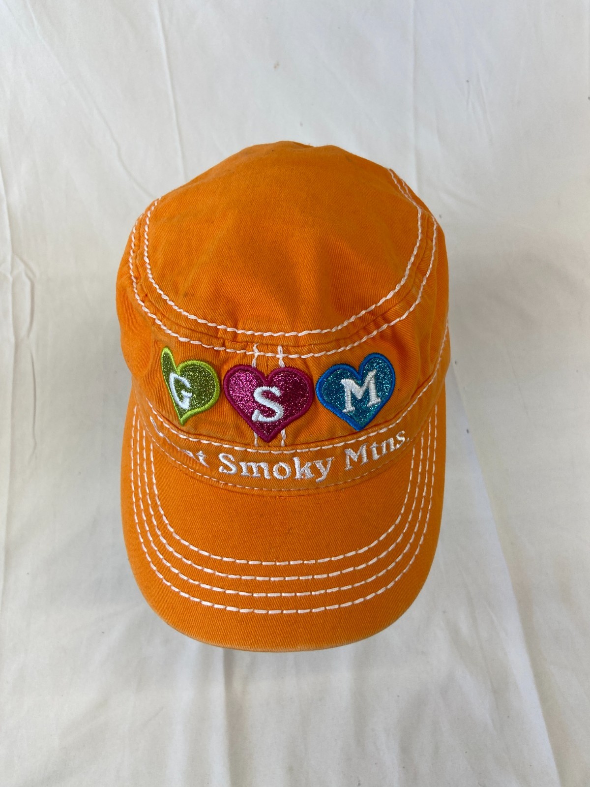 Youth Great Smoky Mountains Cadet Cap Strapback Hat Orange Hearts GSM Travel