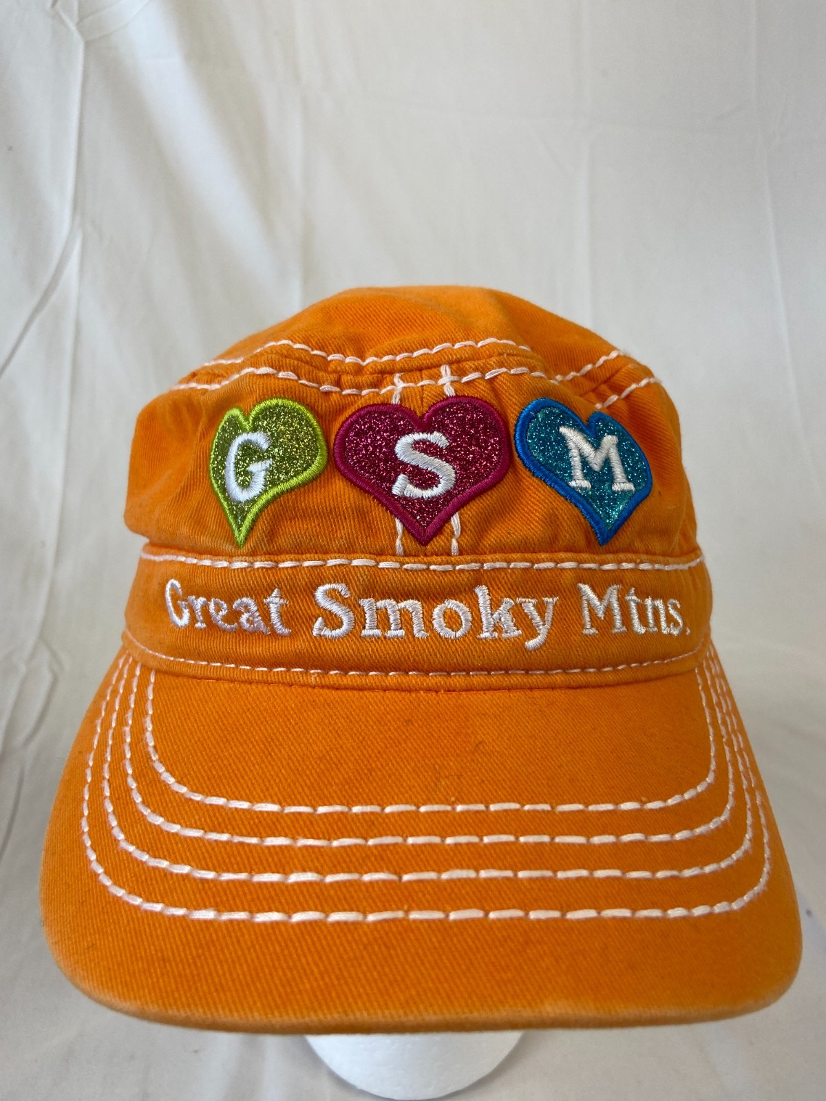 как выглядит Youth Great Smoky Mountains Cadet Cap Strapback Hat Orange Hearts GSM Travel фото