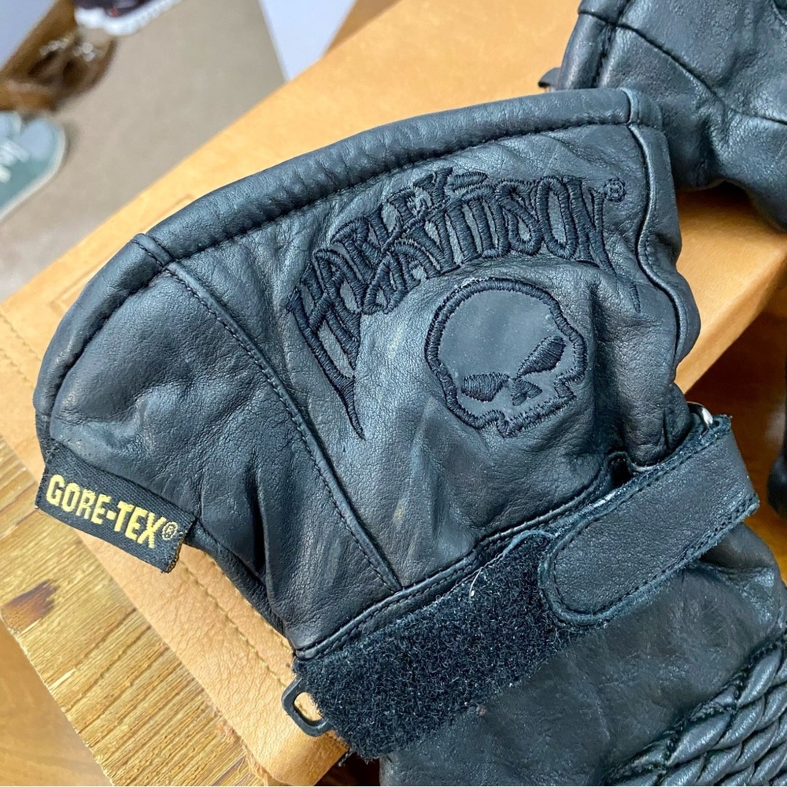 как выглядит Harley Davidson VTG Skull Black Genuine Leather Gortex Biker Gloves Men Sz S фото