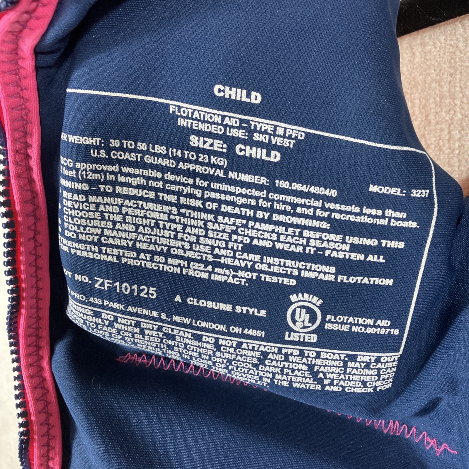 как выглядит Hyperlite Life Vest Jacket 30-50 lbs Child Size Blue and Pink USCG Approved фото