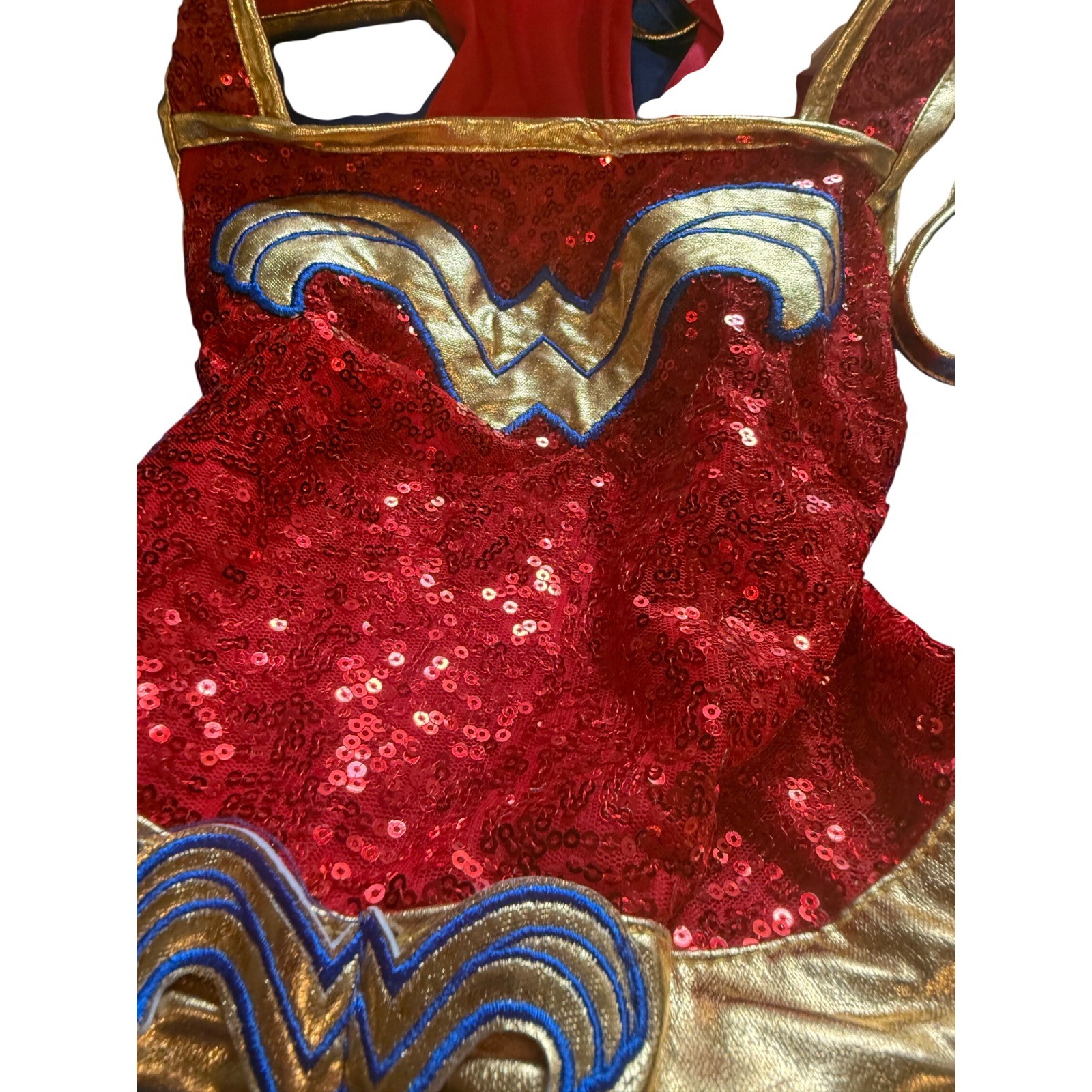 как выглядит Wonder Woman Costume Dress Up Outfit Sequin Cape Halloween Cosplay Kids фото