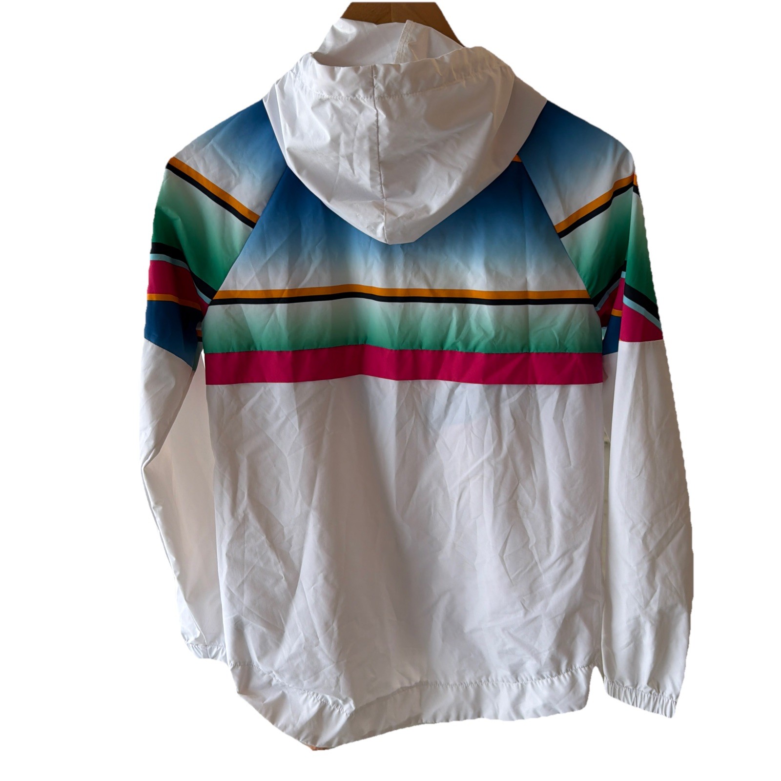 Vintage Y2K FILA White Colorful Striped Full Zip Hooded Windbreaker Jacket Large