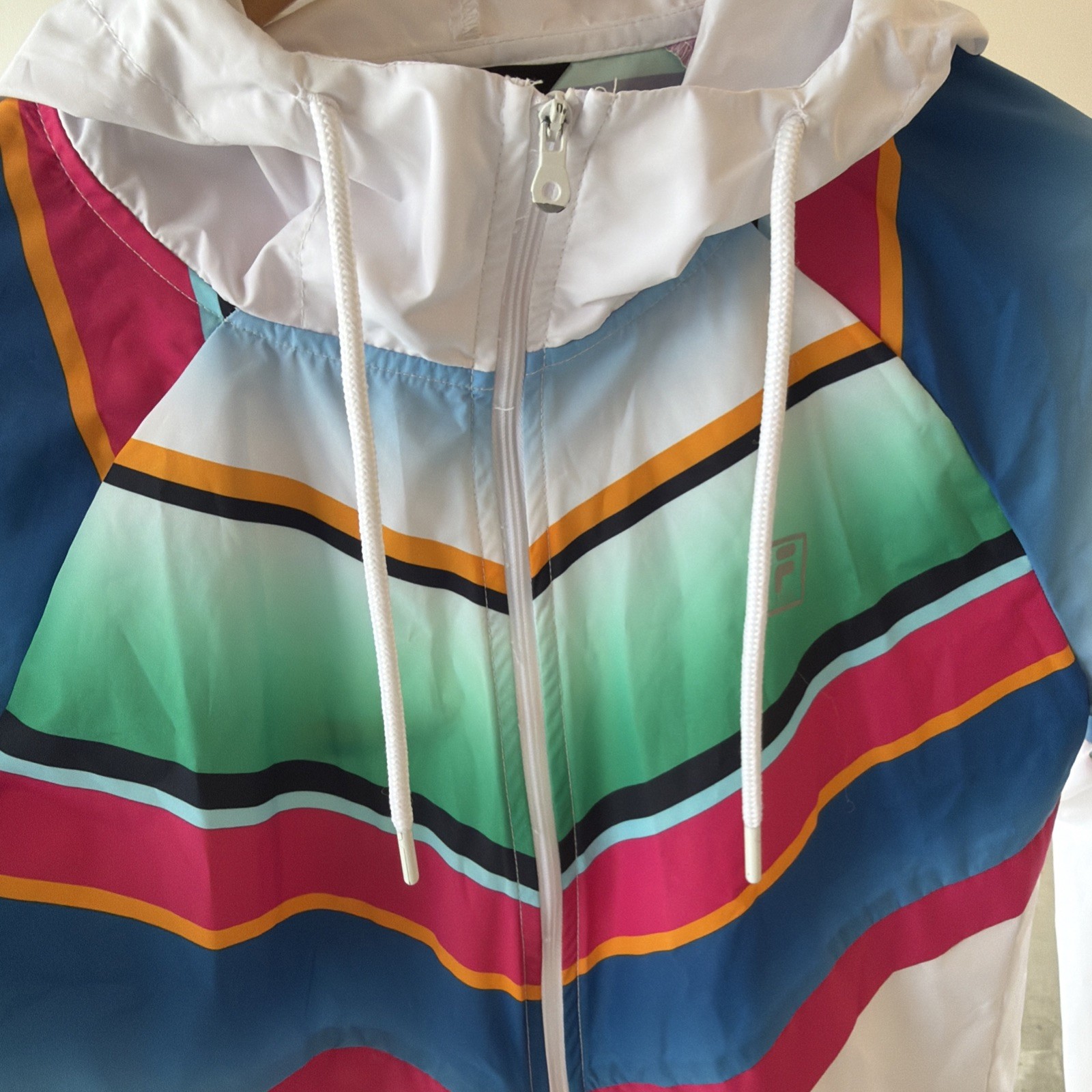 как выглядит Vintage Y2K FILA White Colorful Striped Full Zip Hooded Windbreaker Jacket Large фото