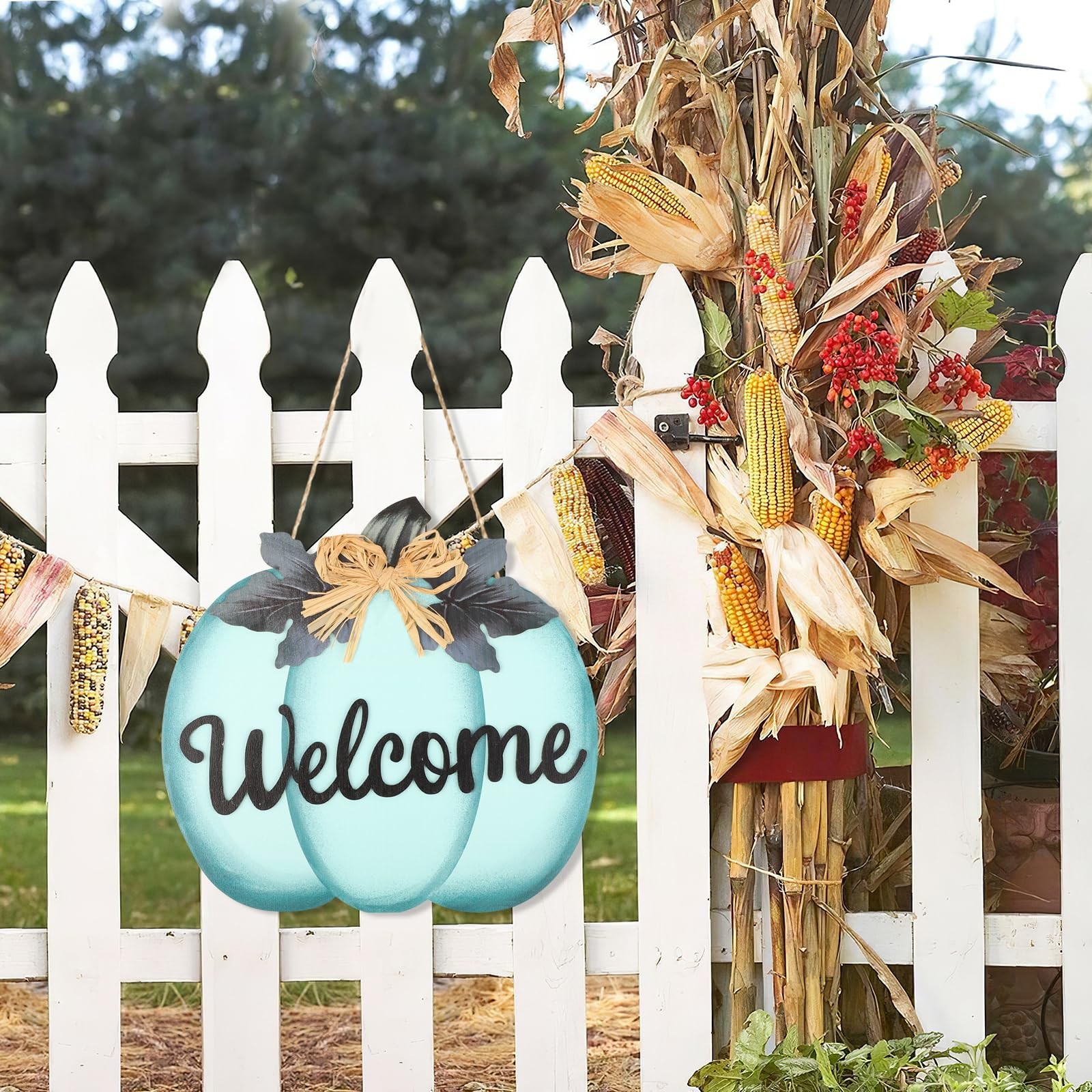Wooden Pumpkin Sign Wall Decor Front Door Welcome Sign for Thanksgiving