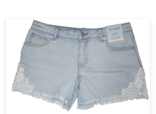 Cat Jack Girl's Embroidered Floral Lace Stretch Jean Cut Off Shorts Size XXL