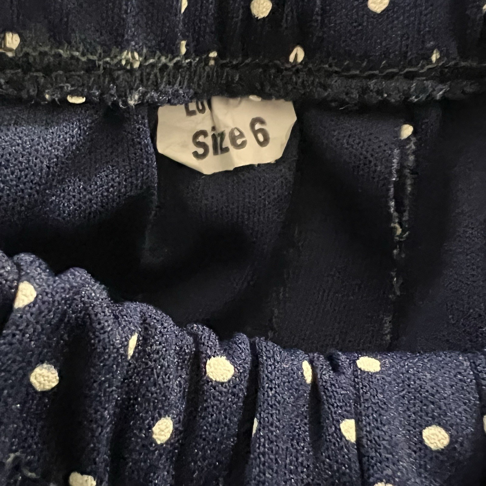 как выглядит Vintage 70s Women s Navy Polka Dot 2-piece Size 6 Skirt Toggle Collar Set Outfit фото