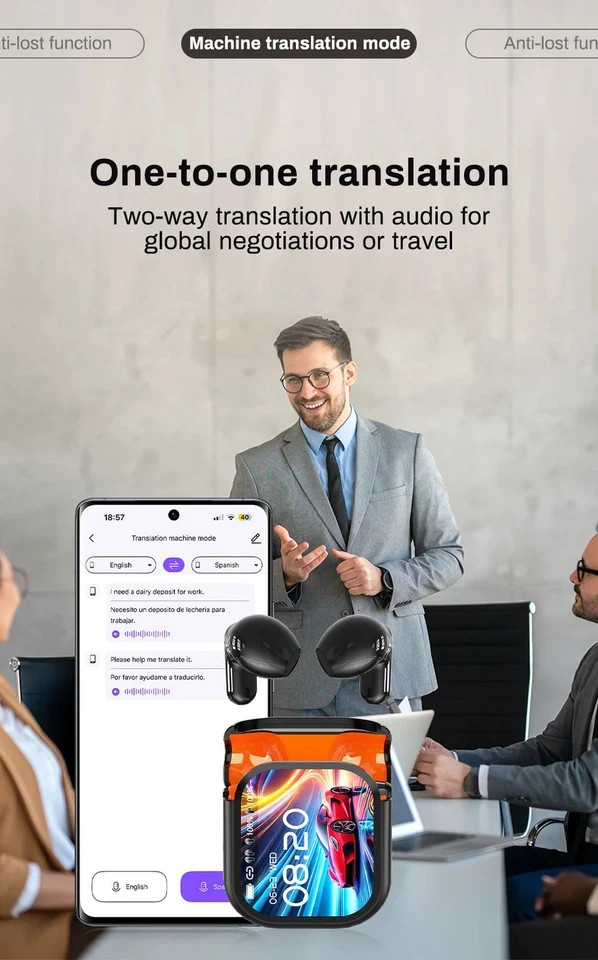 как выглядит NE20 AI Translator Earbuds Bluetooth 6.0 LCD Touch  Wireless HD StereoHISTORY фото