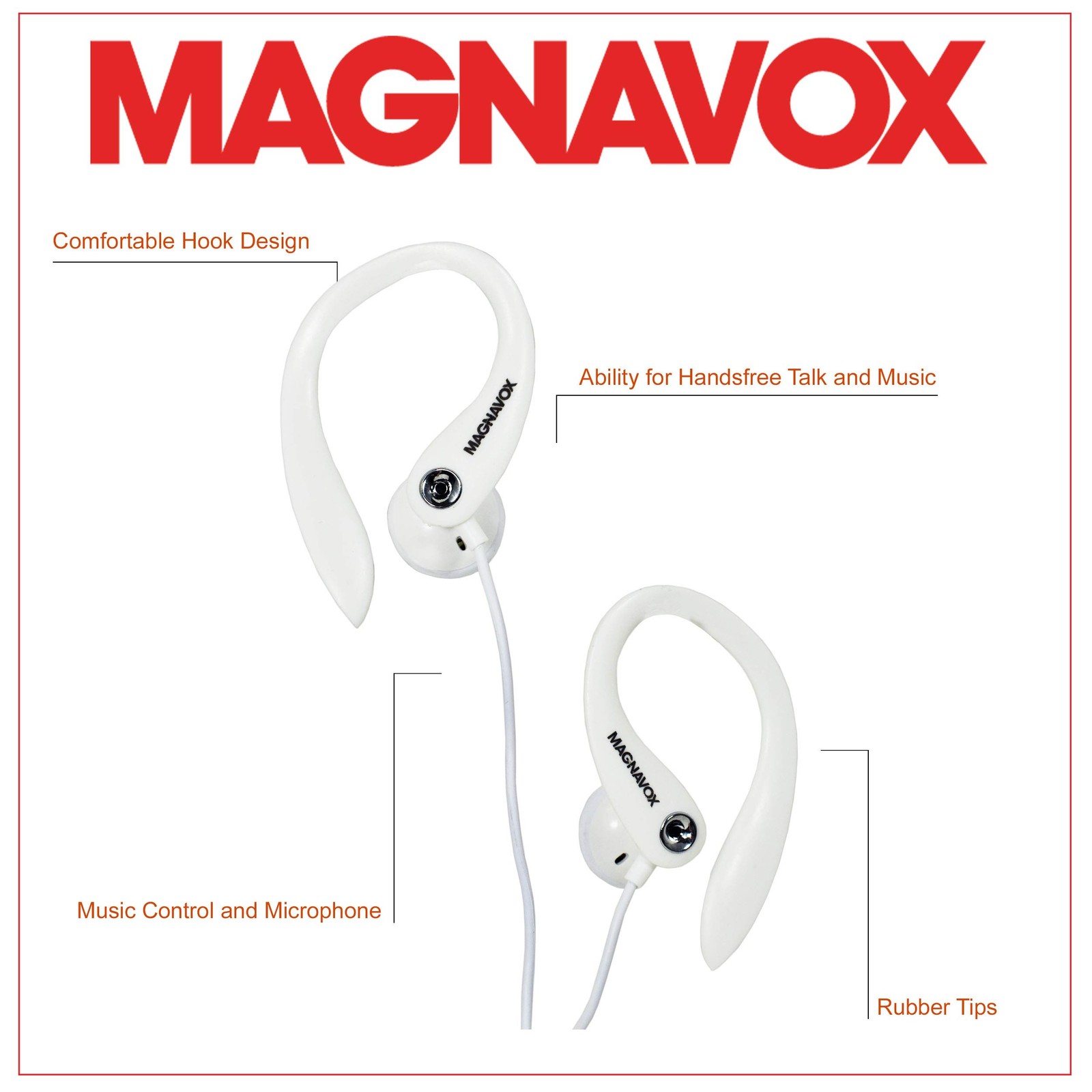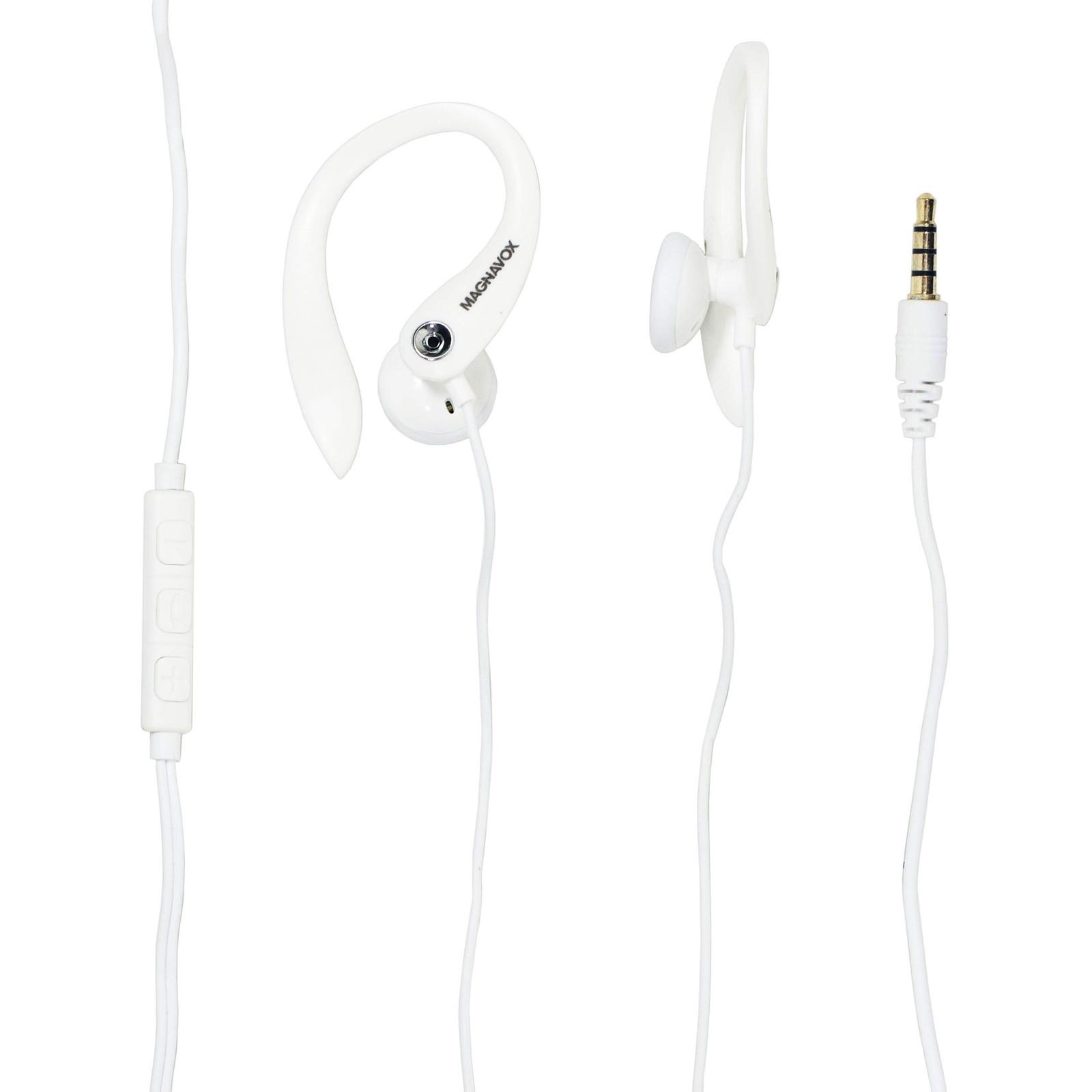 Magnavox MHP4854 White Earhook Earbuds with Microphone and Durable Cable