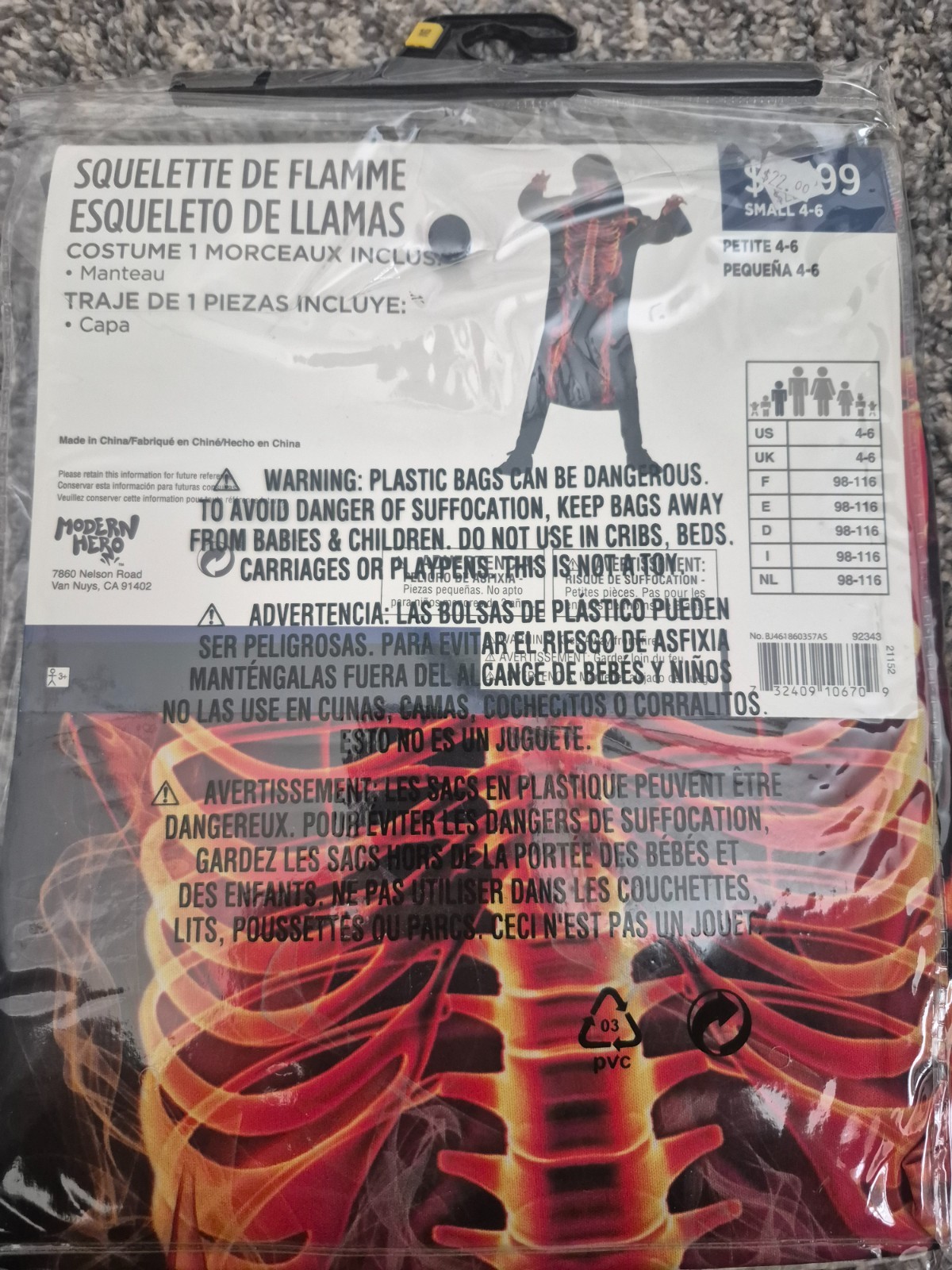 как выглядит Flame Skeleton Costume Child Size S 4-6 Halloween фото