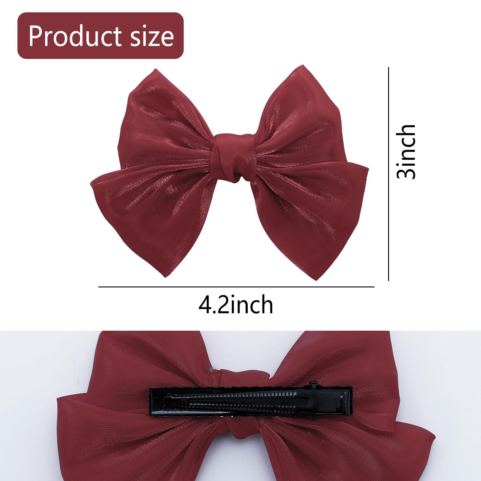 2 Pack 4 Inch Red Organza Double Hair Bows with Alligator Clips for Girls