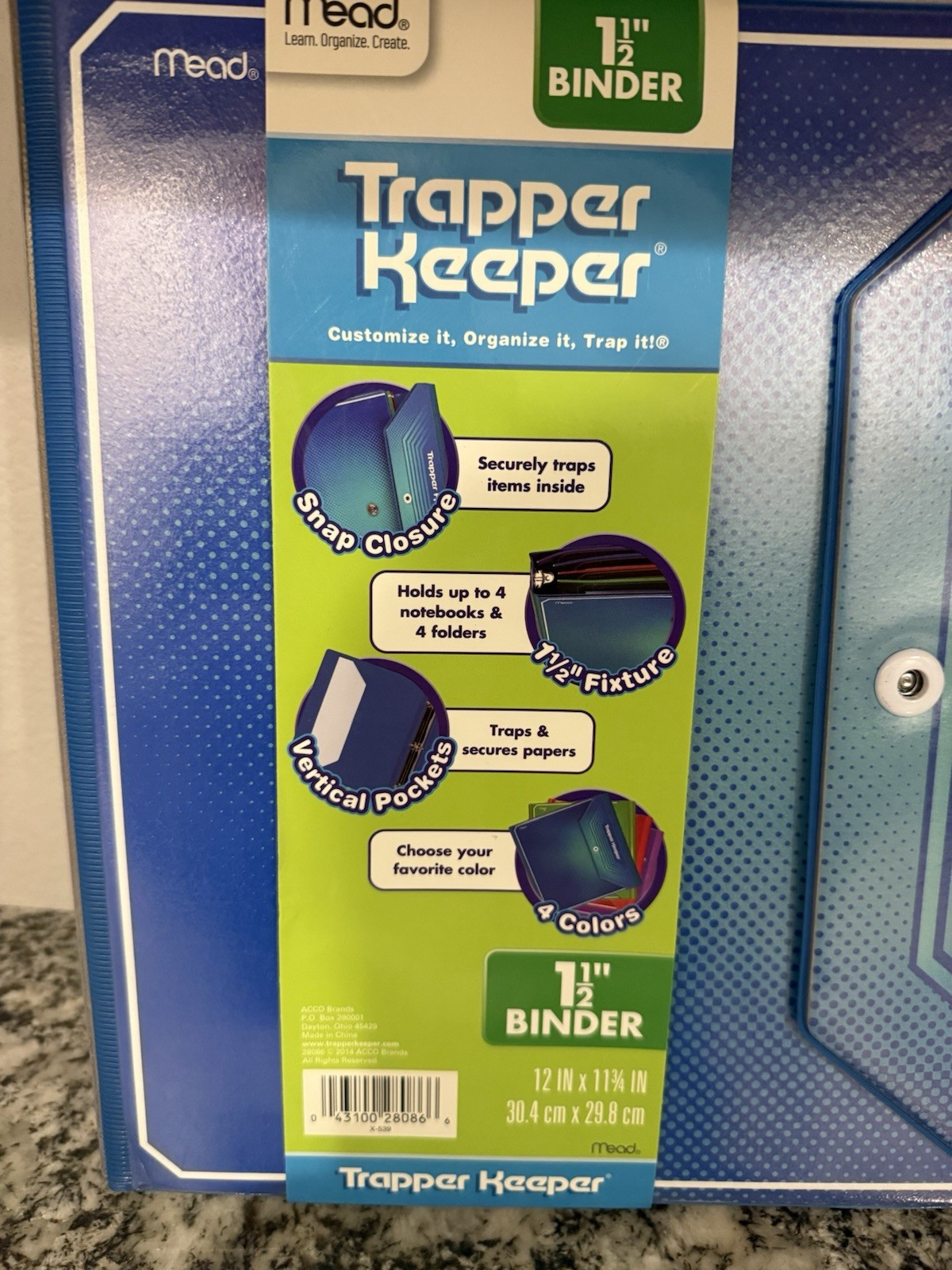 как выглядит Mead Trapper Keeper Blue 1.5" 3 Ring Binder Folio Pocket 2013 Retro Style фото