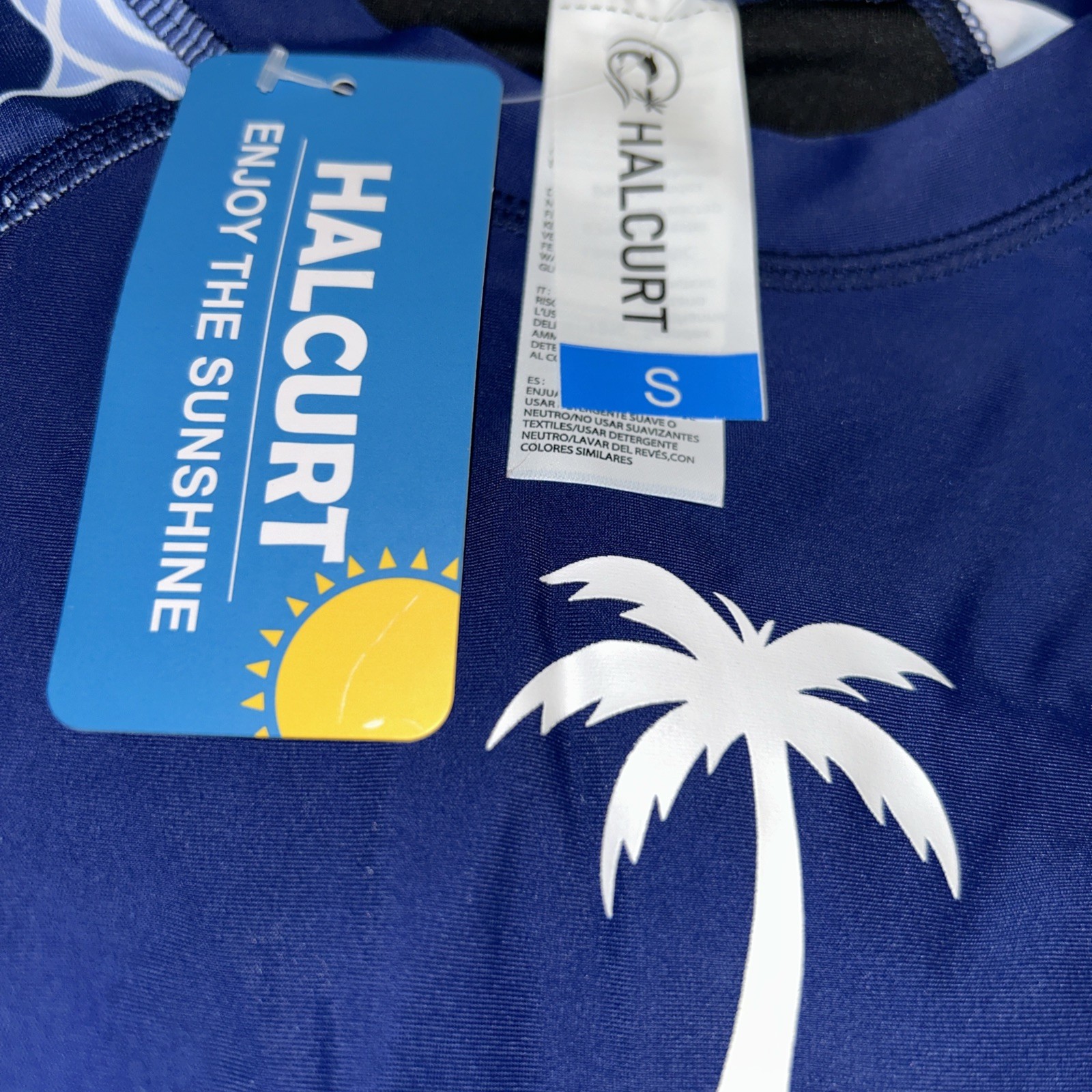 NEW Halcurt Women's Size Sx Rash Guard UPF 50 Swim Shirt Palm Tree Black
