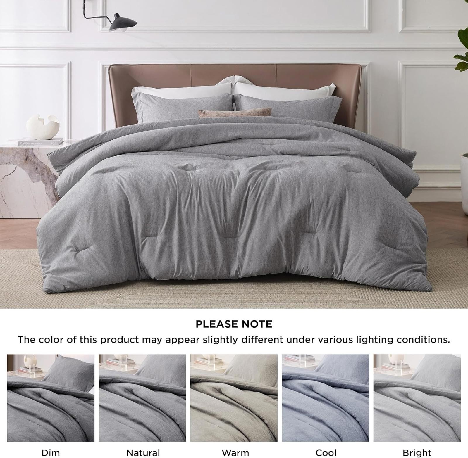 как выглядит Bedsure Full Comforter Set - Dark Grey Soft Bedding for All Seasons, 3 Pieces фото