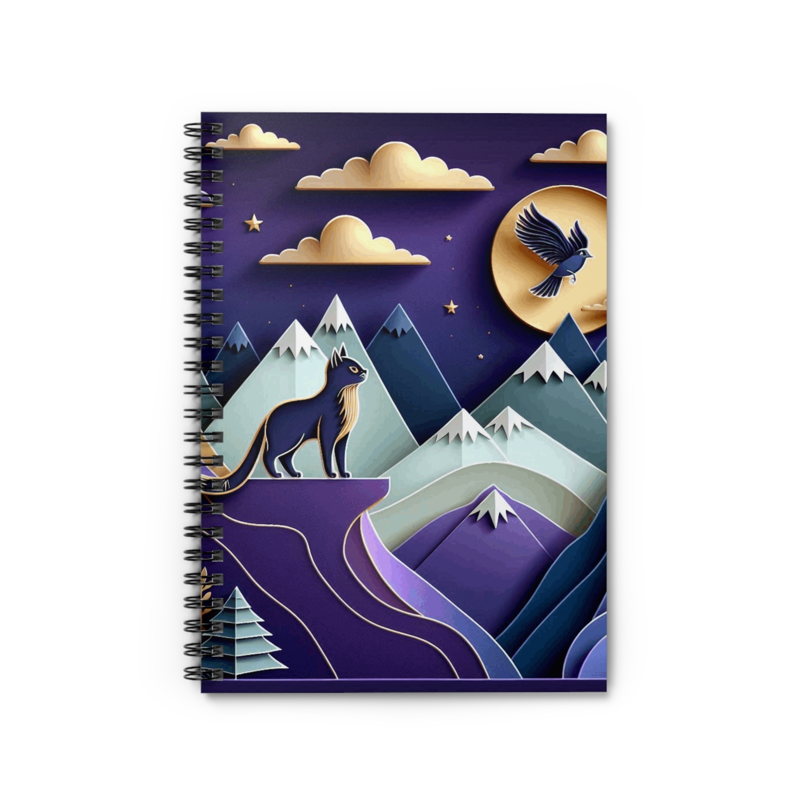 Spiral Notebook Ruled Line Cat Overlooking Mountains Quilling Design 3, Gift