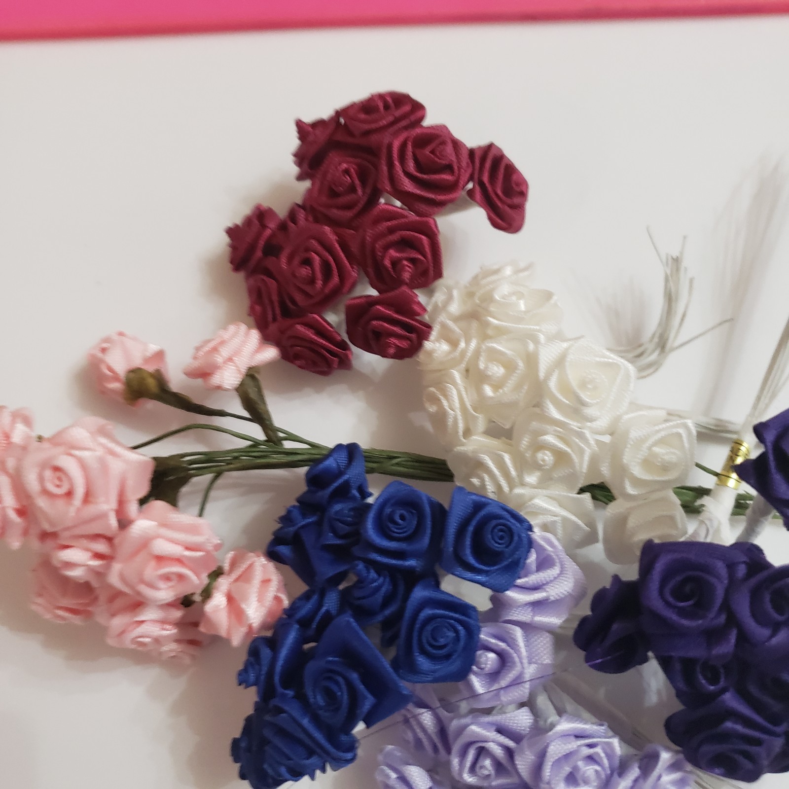как выглядит Assorted Colors Satin Ribbon Roses Flowers 20 mm or 1 cm on Wire Stem 72 pieces фото
