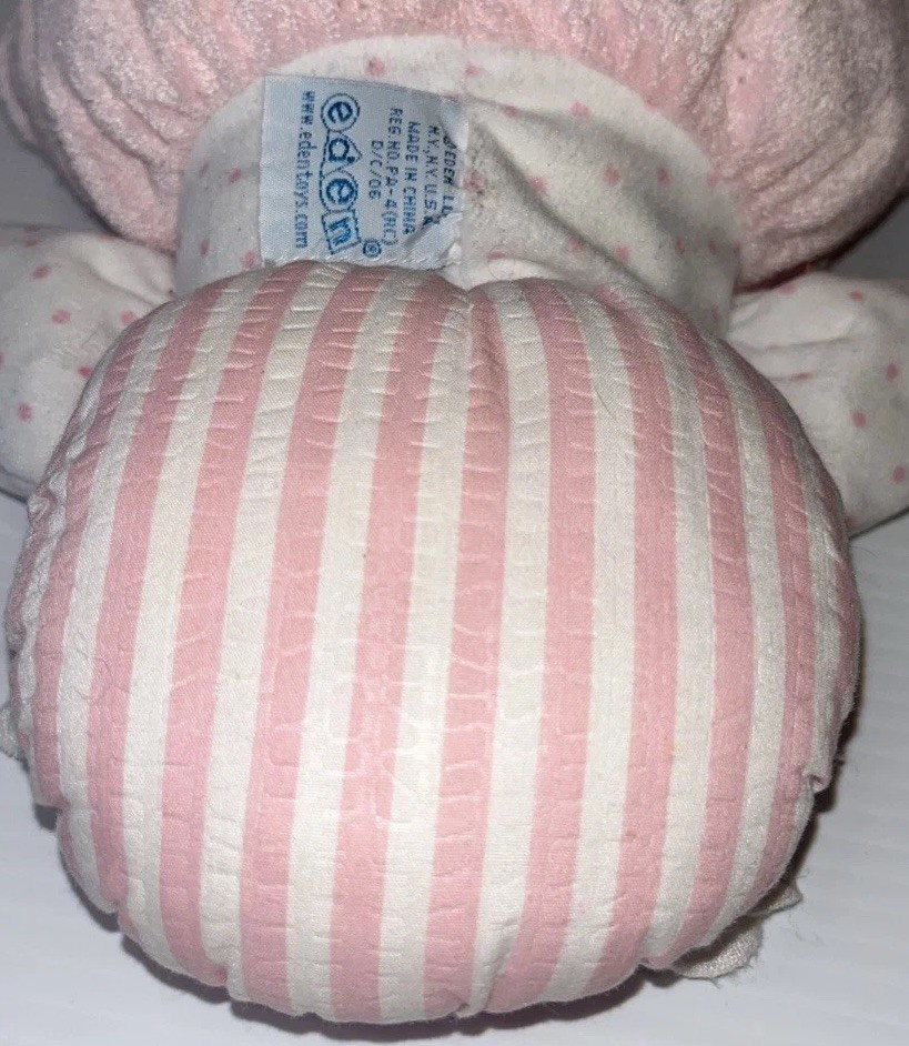 Vintage Eden Terry Cloth Pink Bonnet Doll Blonde Crinkle Rattle Plush Baby Lovey