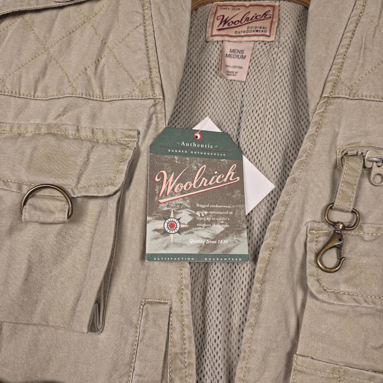 NWT Vintage Woolrich Safari Vest Mens Medium Khaki Tan Fishing Travel Utility