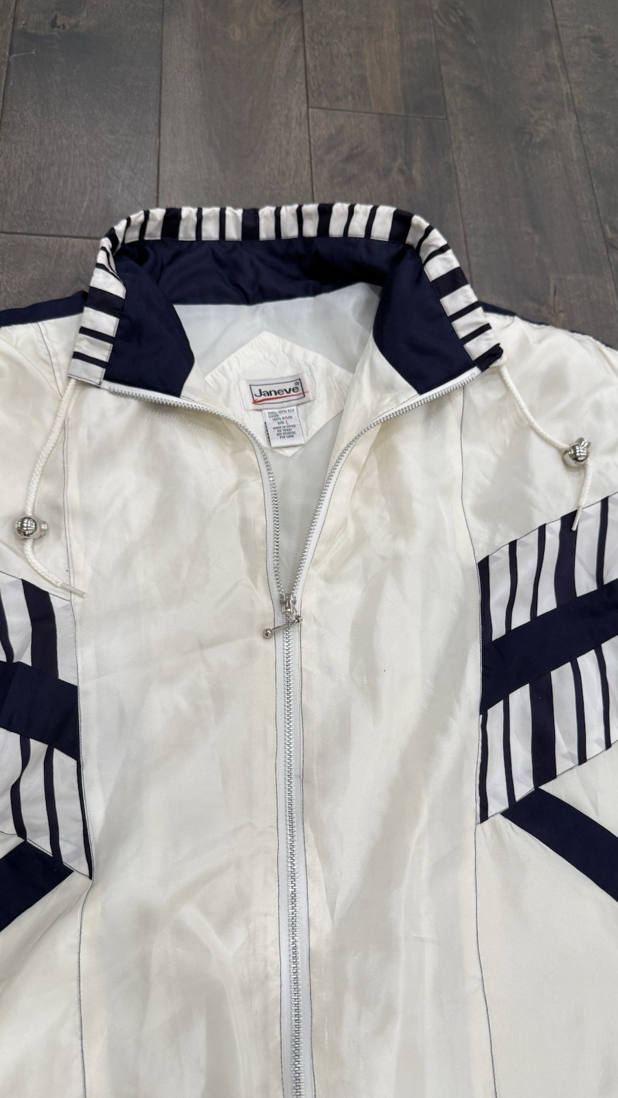 как выглядит Vtg 80 s 90 s Janice Silk Windbreaker Track Suit Set Jacket Pants Navy Cream фото