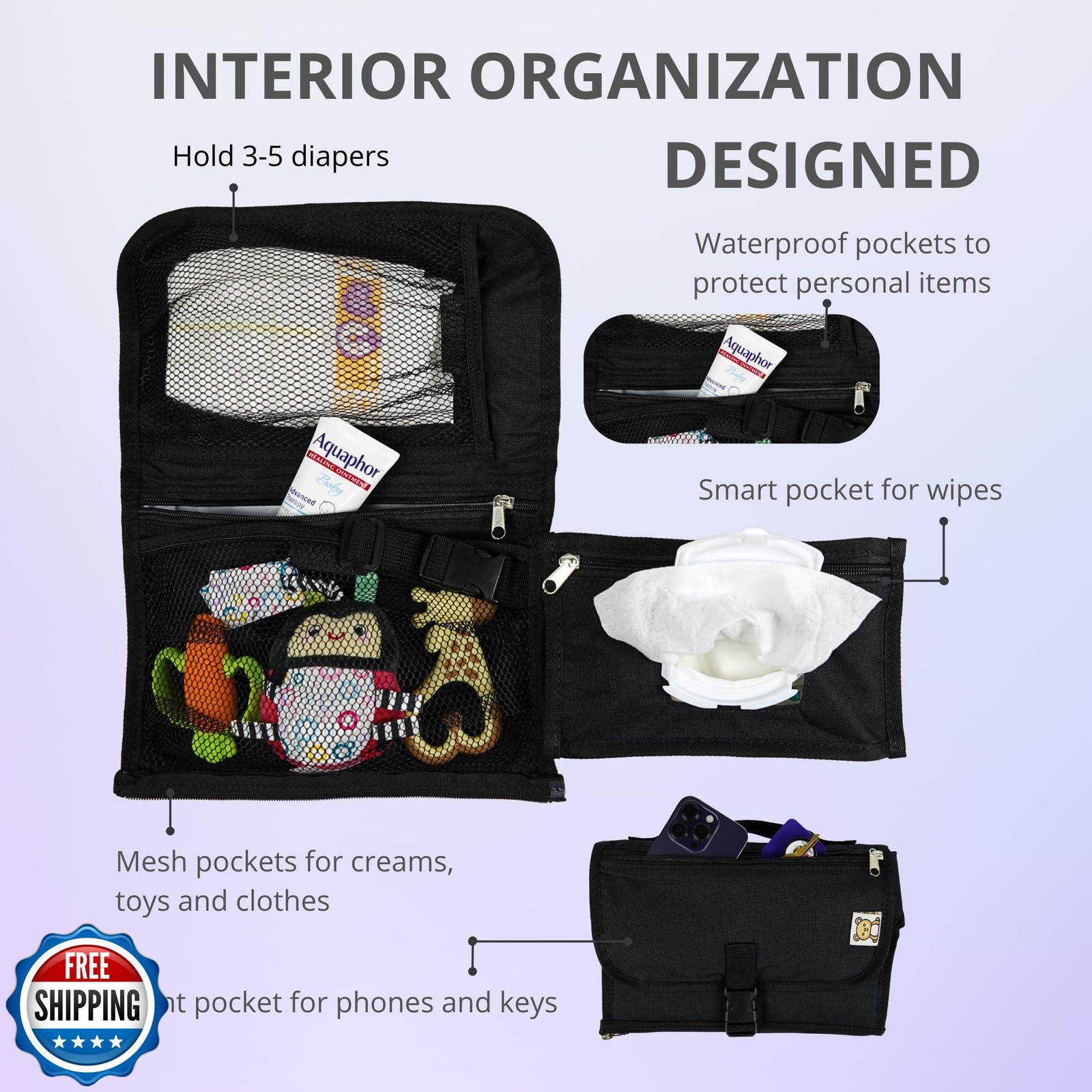 Portable Diaper Changing Pad, Waterproof Travel Baby Changing Mat with Wipes