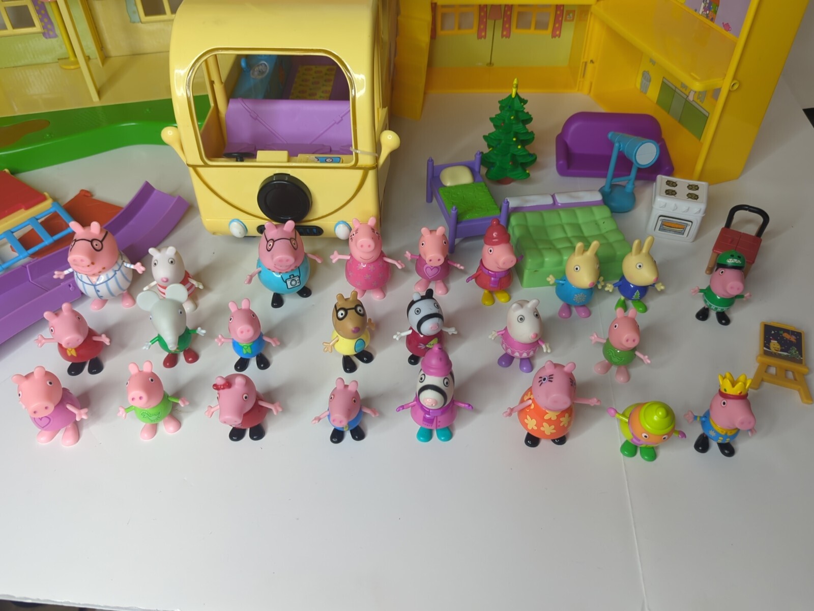 Huge Peppa Pig Lot 4 Story House RV Van Small House 24 Figures With Accessories
