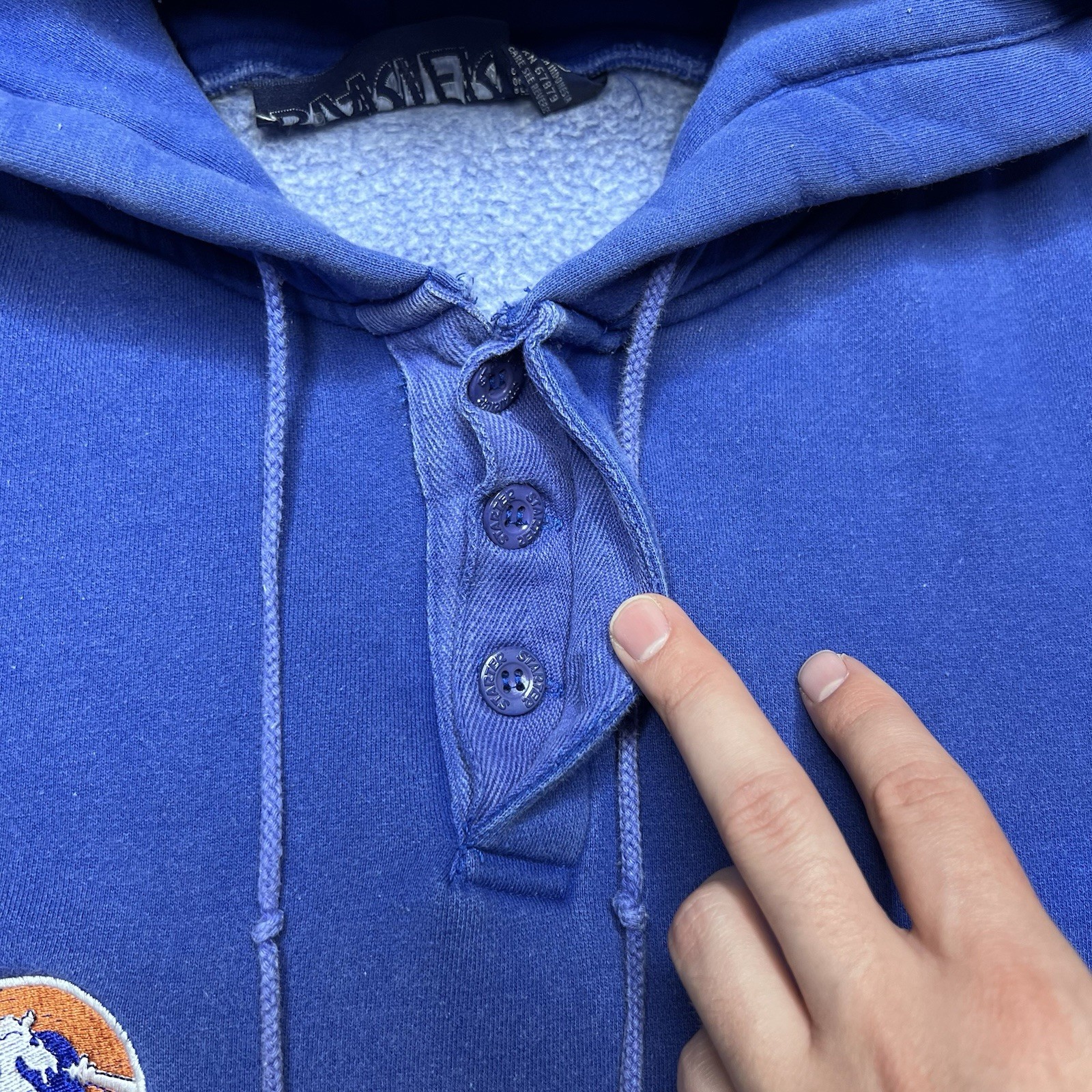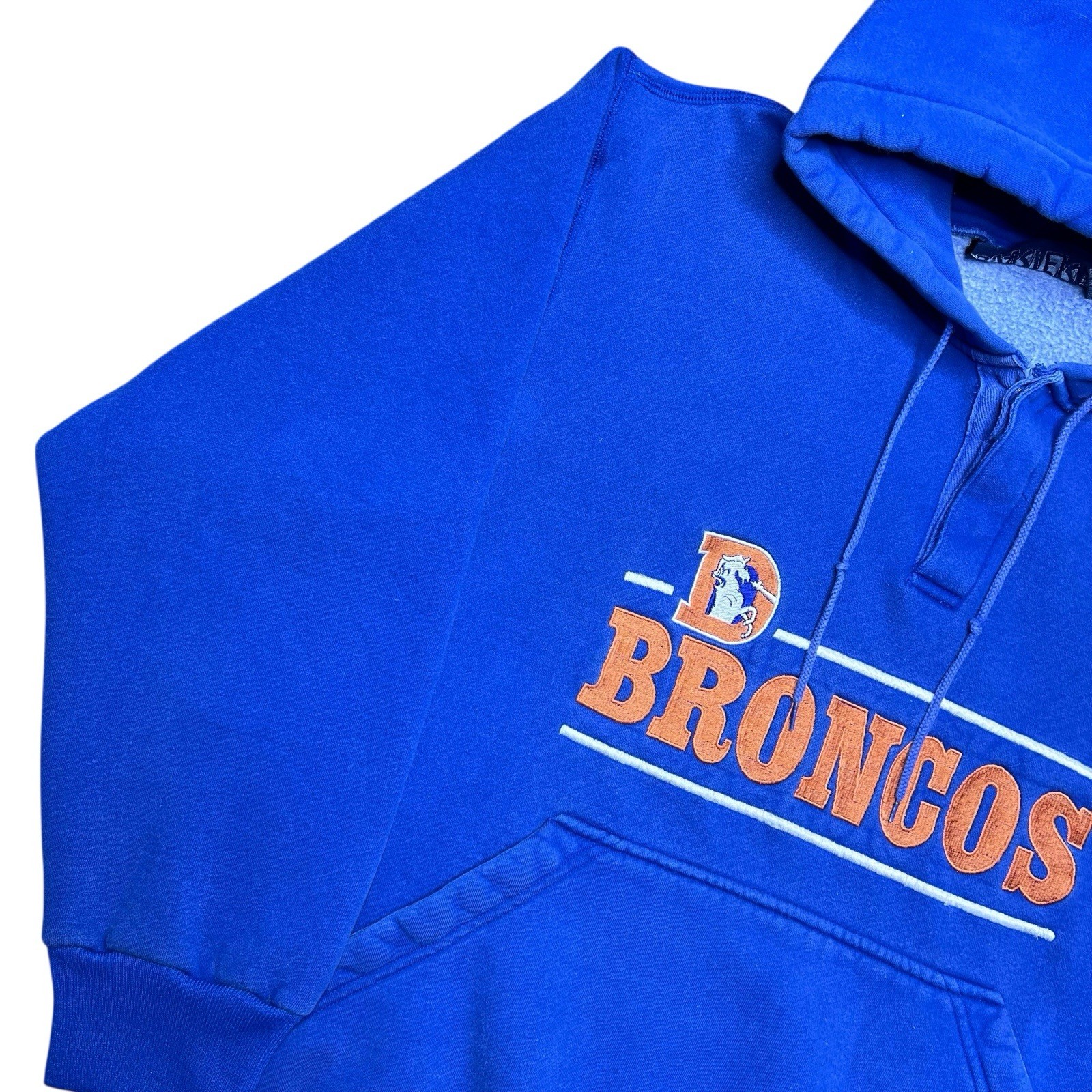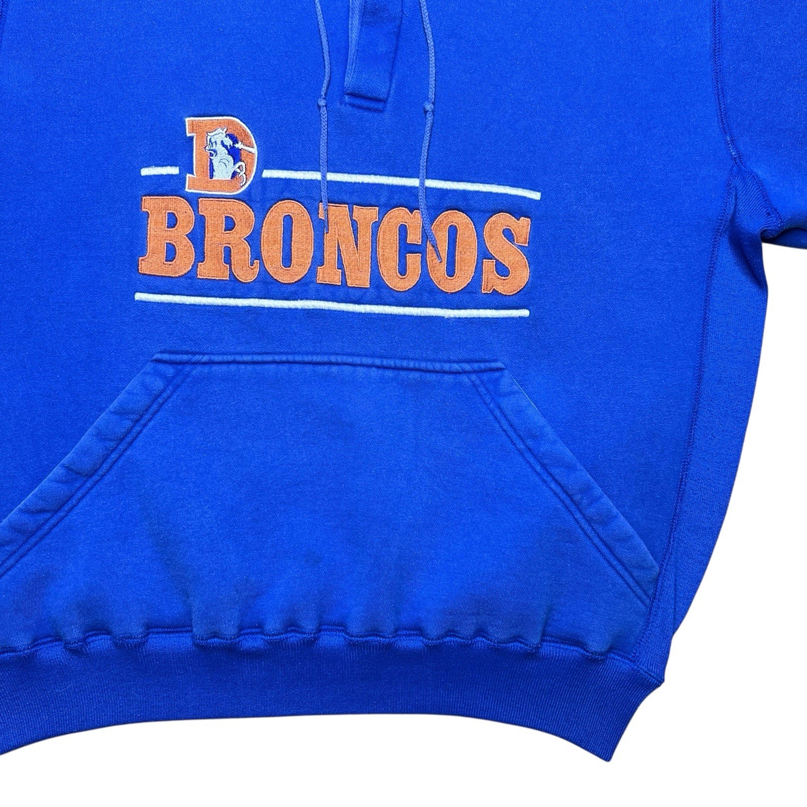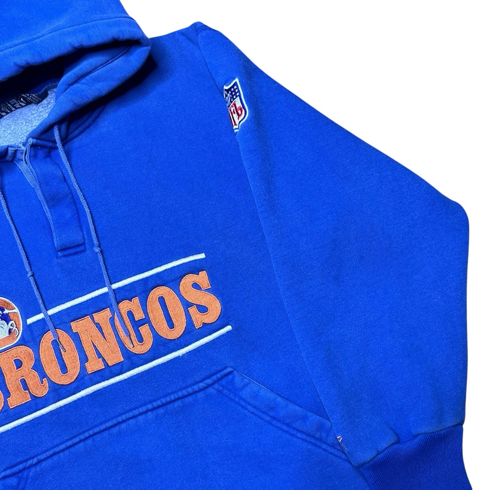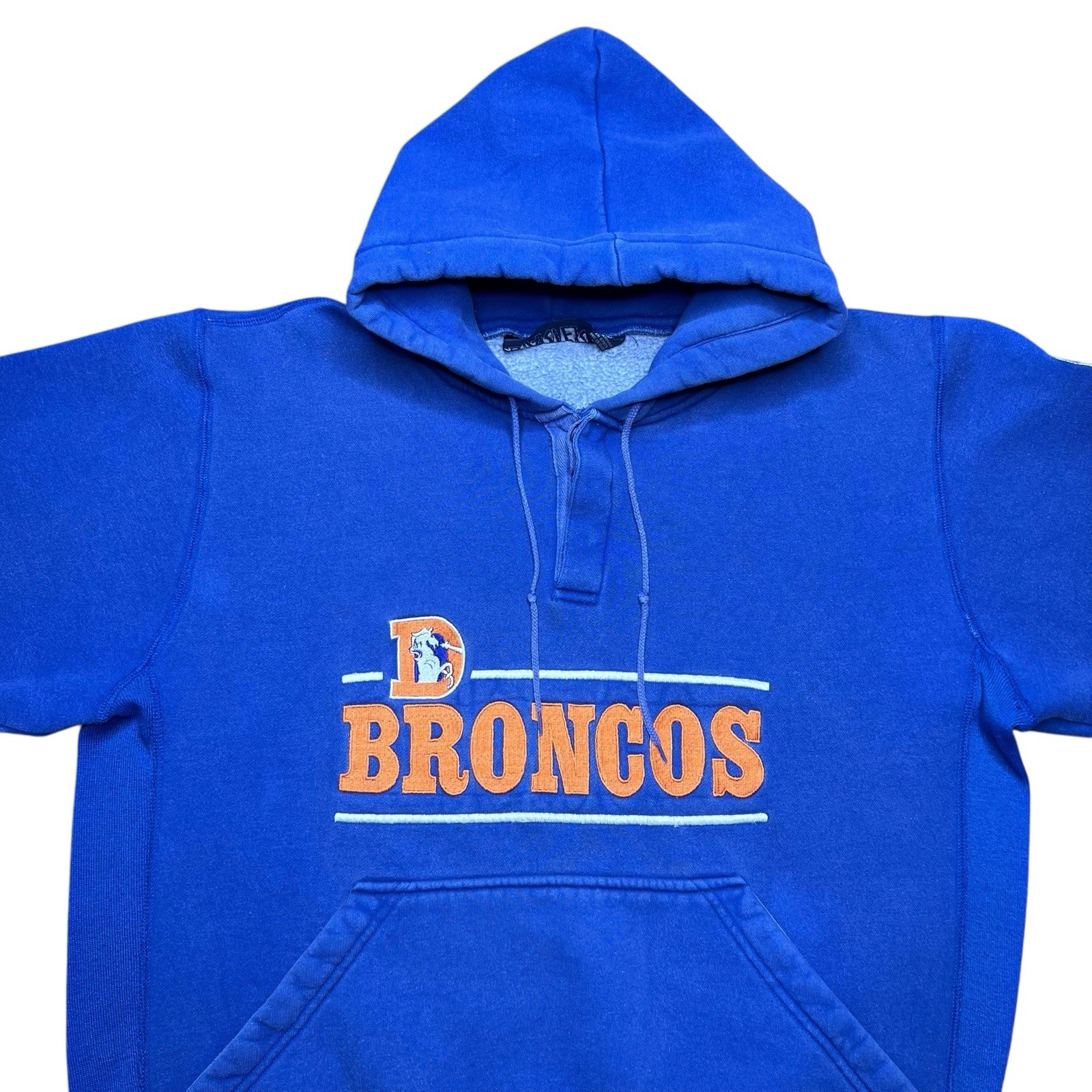 • Vintage 1990s NFL Denver Broncos Starter Embroidered Spell Out Blue Hoodie