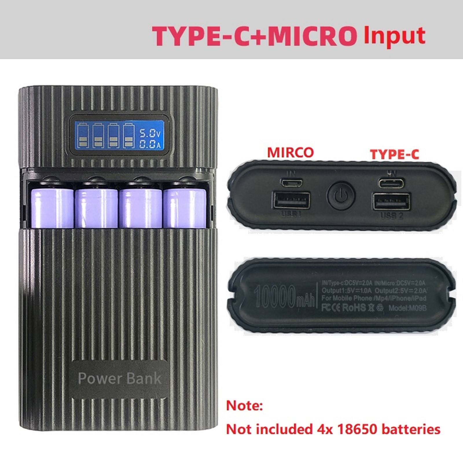 New Black DIY Power Bank Case Battery Charger Storage Box Digital Display I