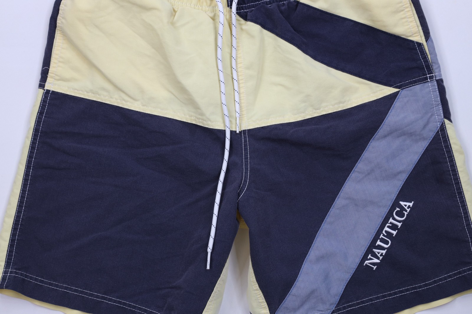 как выглядит Vtg 90s Nautica Mens Small Faded Spell Out Color Block Lined Shorts Swim Trunks фото