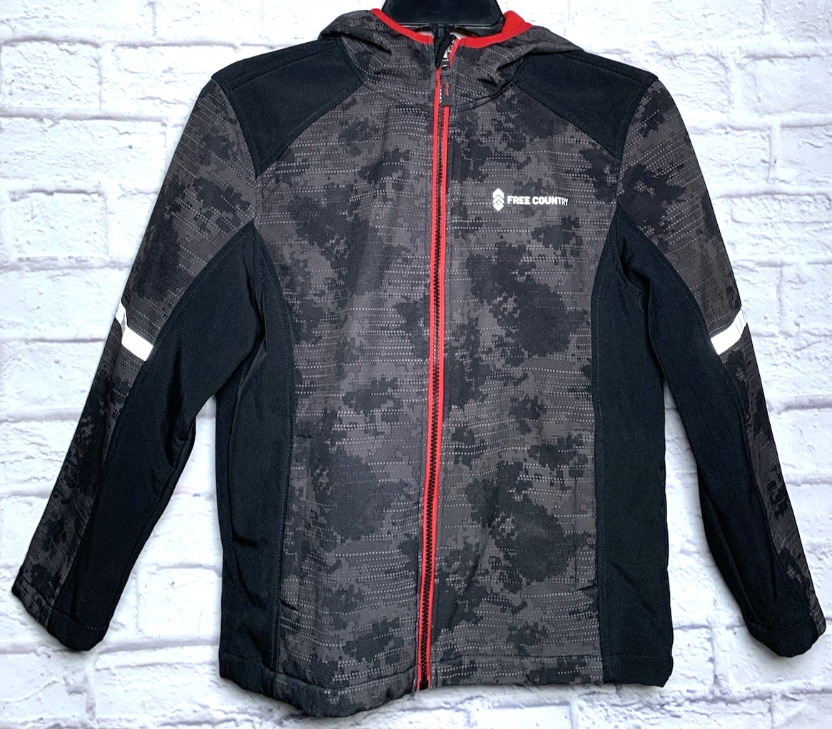 Youth Boys Free Country Water Resistant Black Red Hooded Jacket Size 10/12.