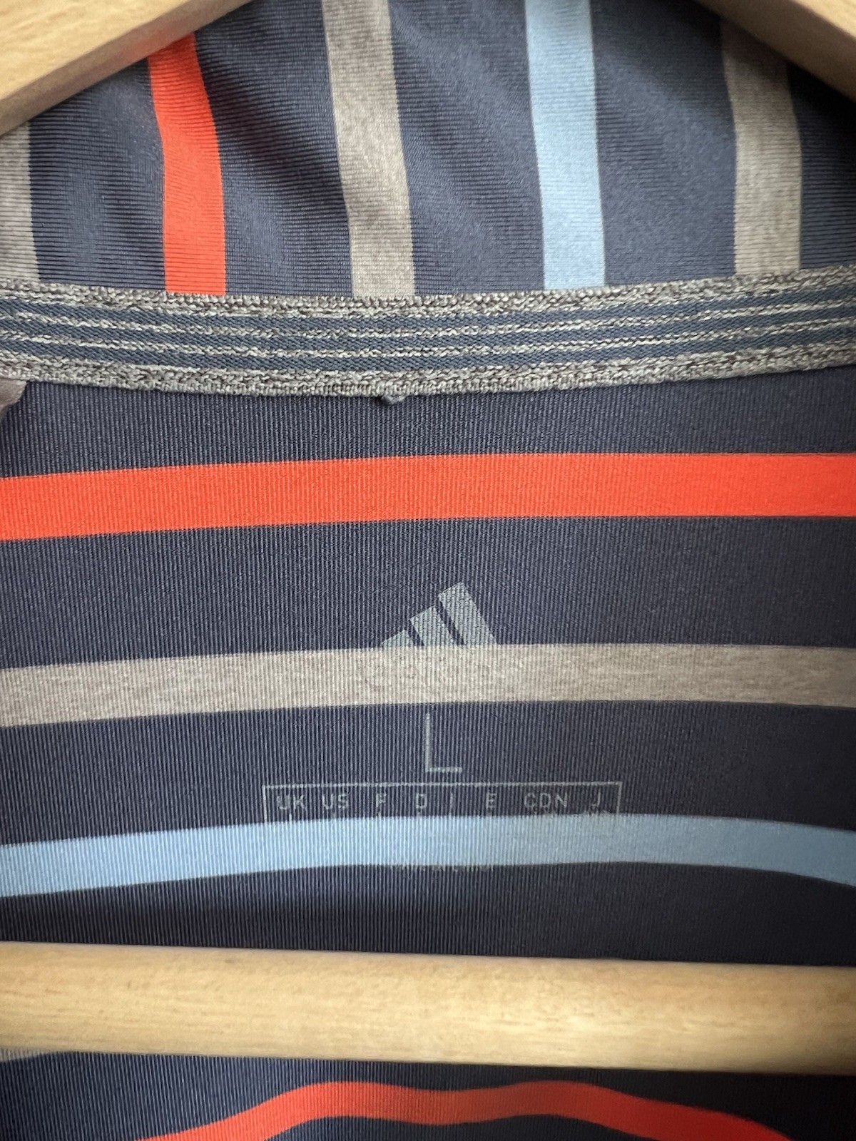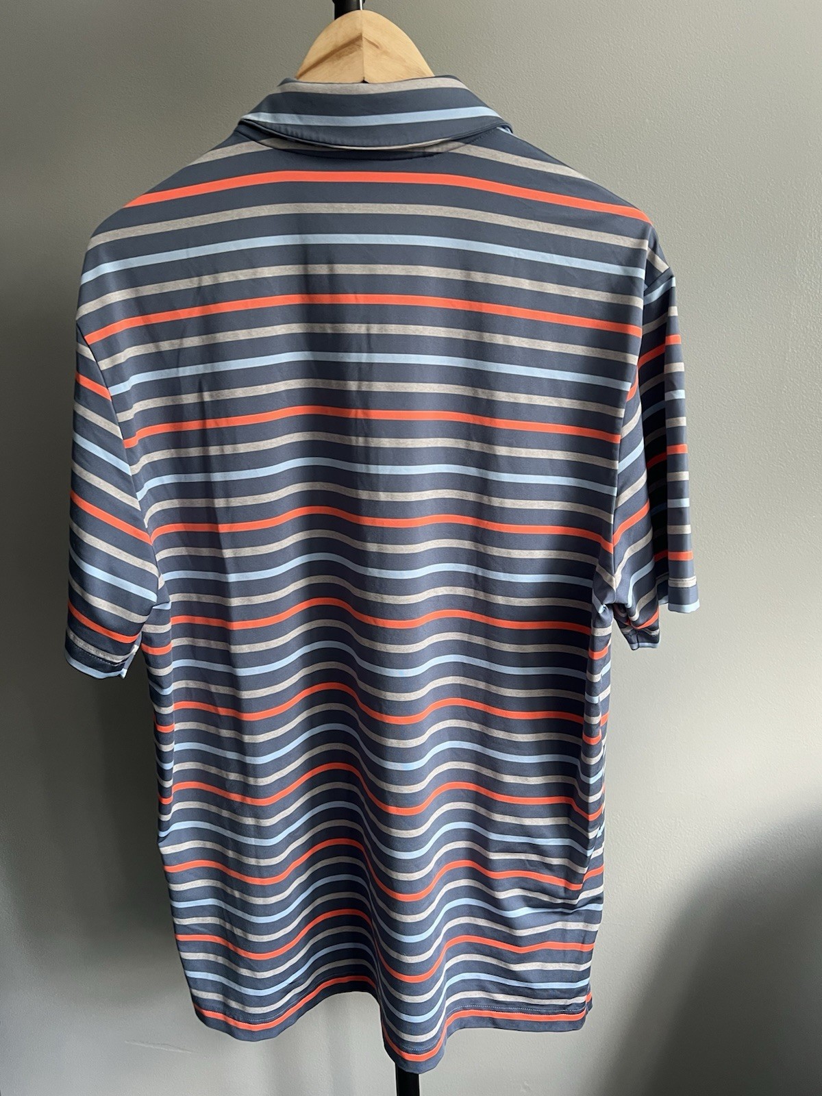 как выглядит Adidas Men s Golf Polo Orange Striped Medinah Country Club Size Large фото