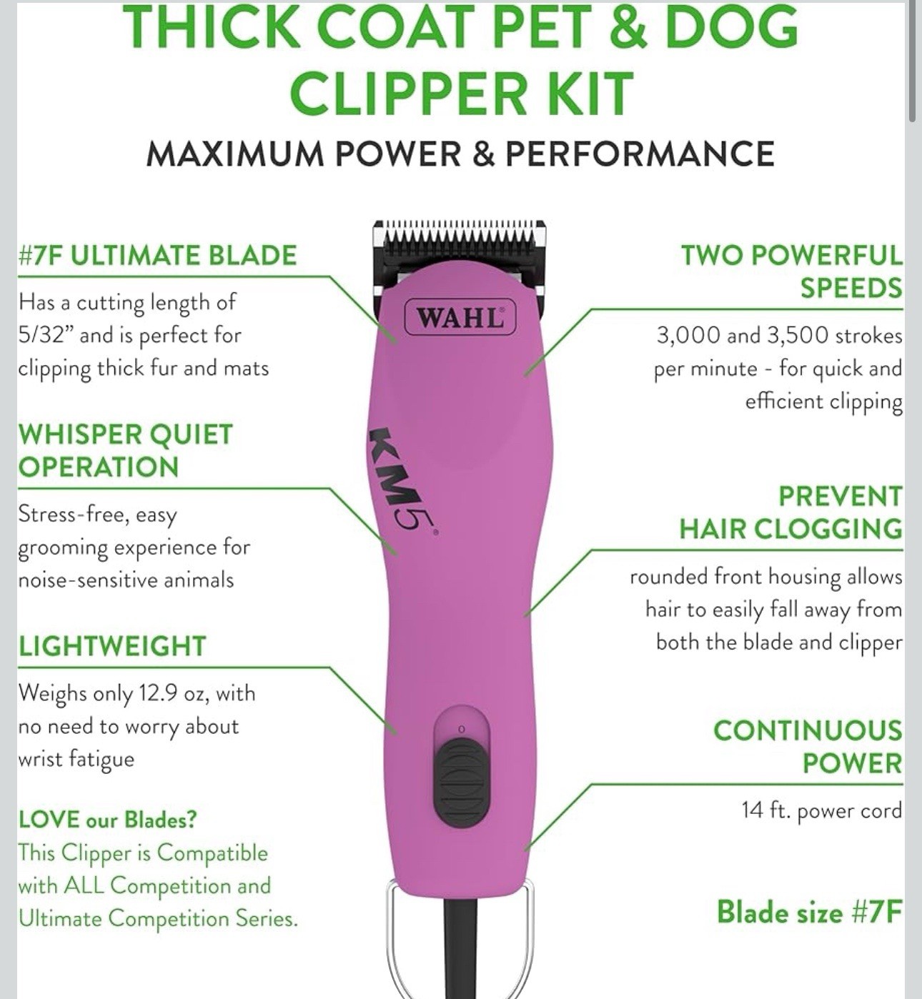 Wahl KM5 2 Speed Brushless Motor Animal Clippers - Pink - LIGHTLY USED read