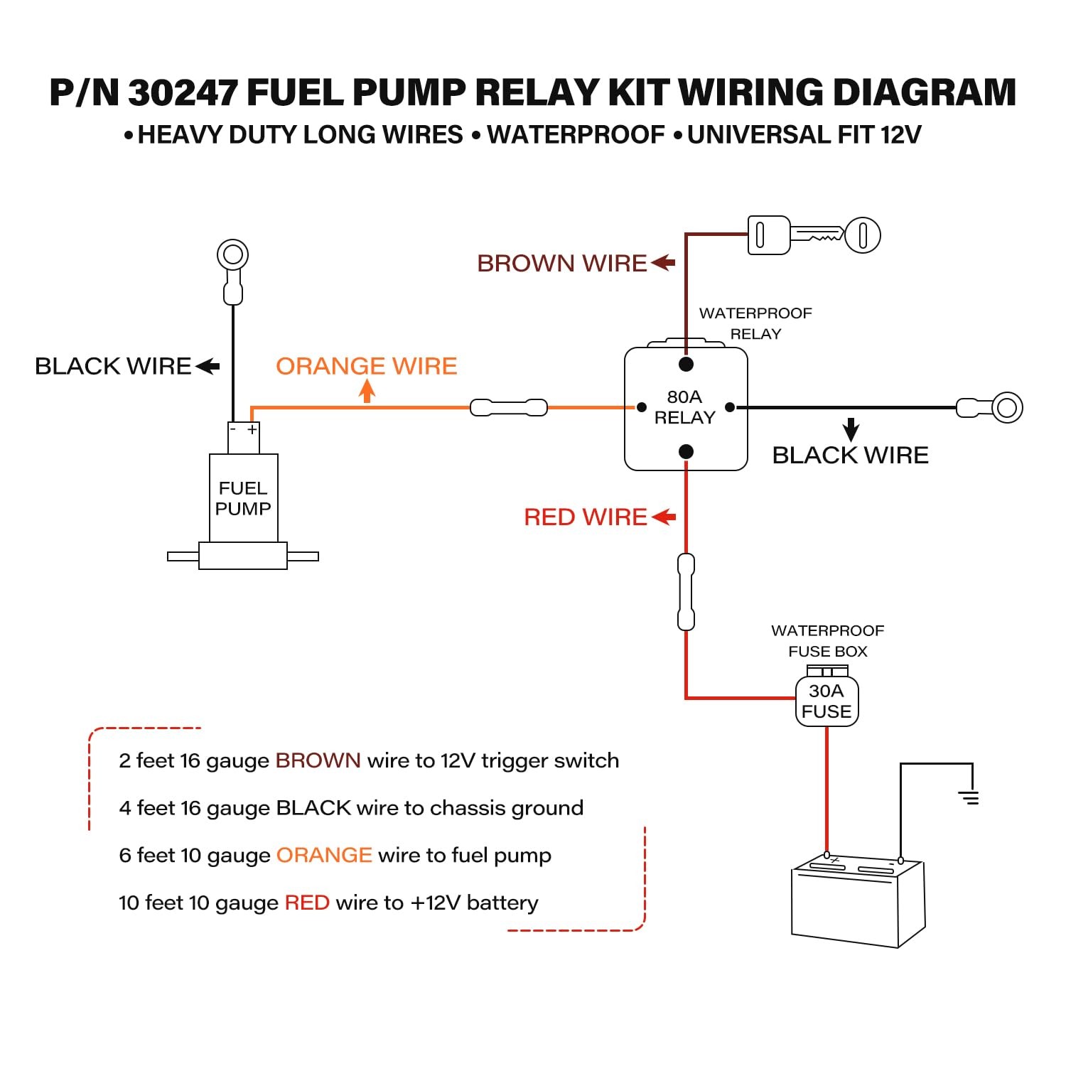 12V System 80 Amp Electric Fuel Pump Relay Kit |