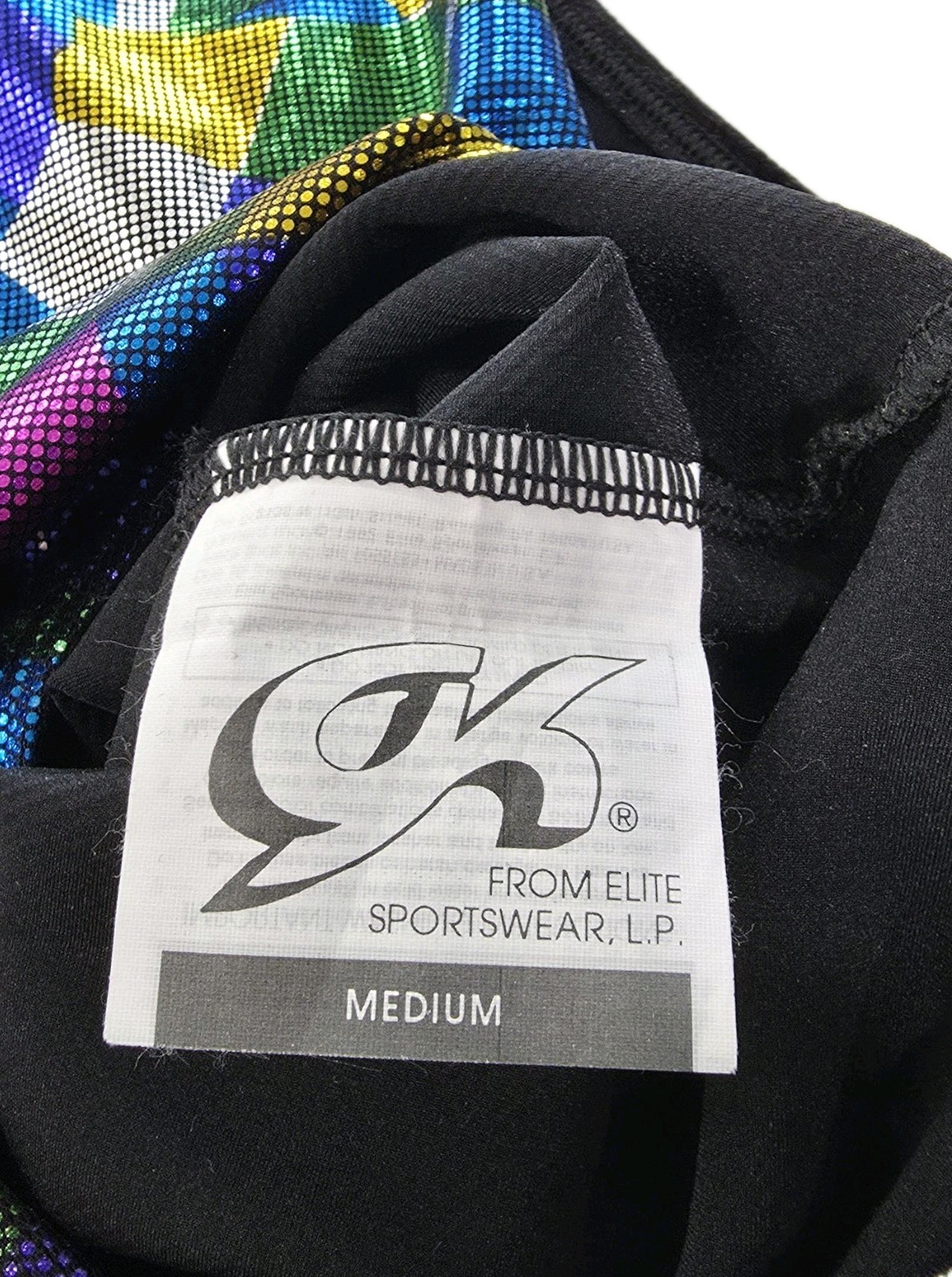 GK Elite VTG Pixelated Metallic Geometric Leotard Velvet Trim Size AM Adult M