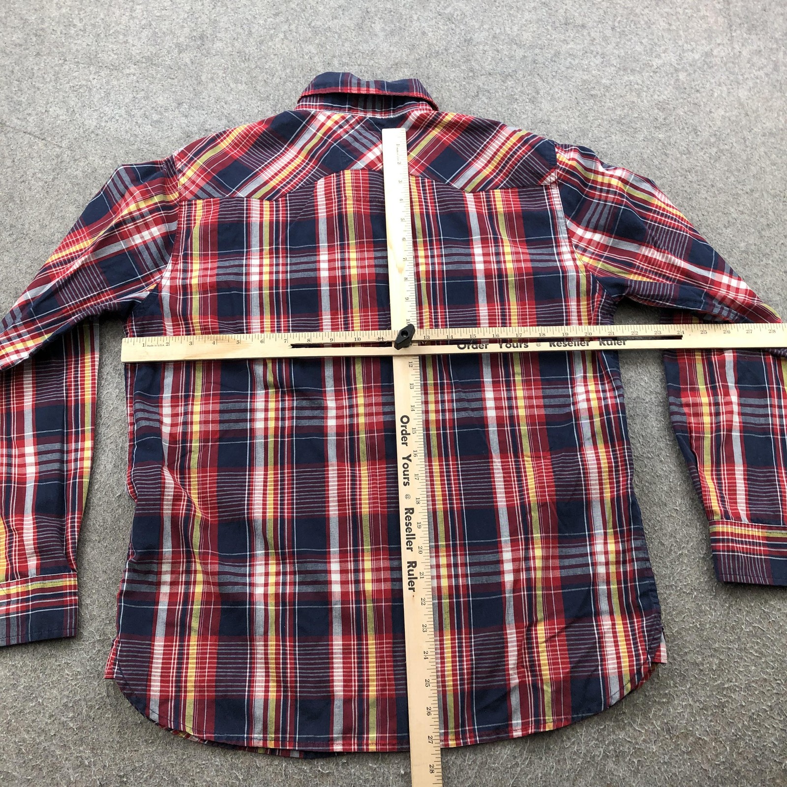 как выглядит Levis Shirt Mens Medium Red Navy Plaid Long Sleeve Pearl Snap Cowboy Western фото