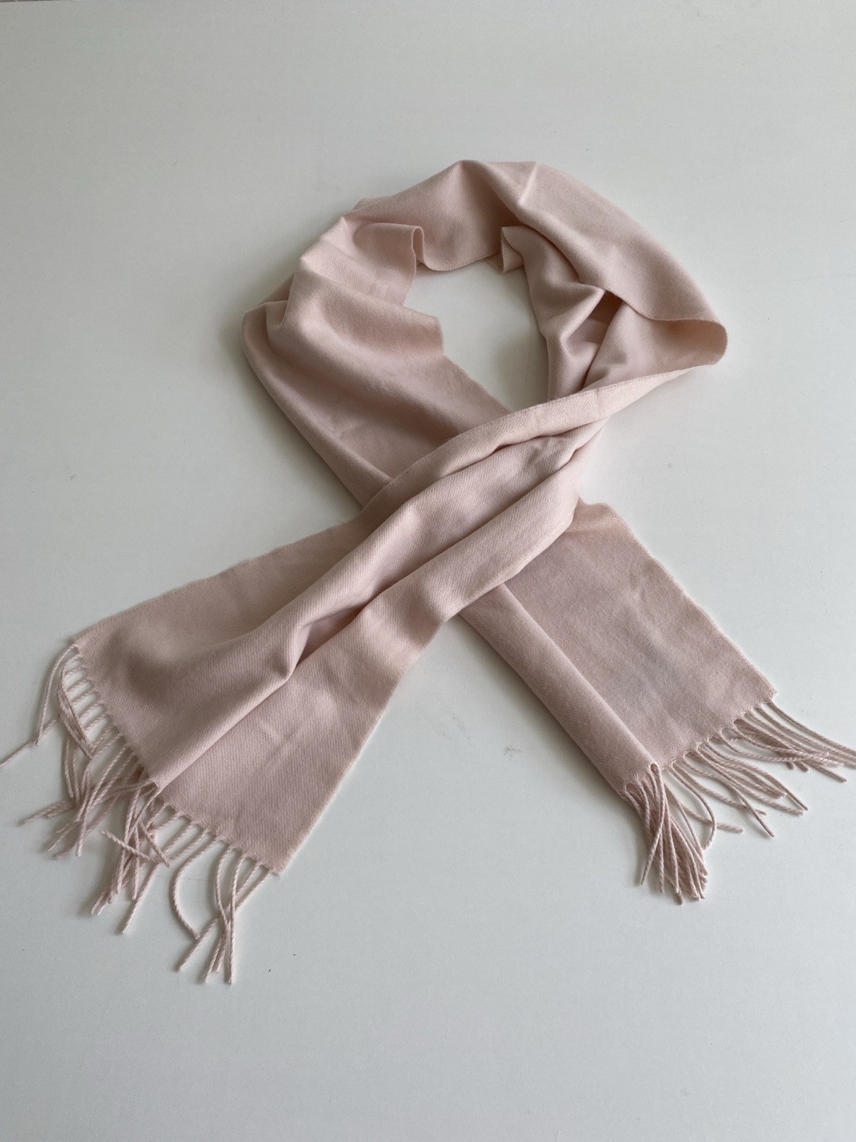 как выглядит Vintage 100 Cashmere Pale Pink Hand Tailored Scarf Fringe Blush фото