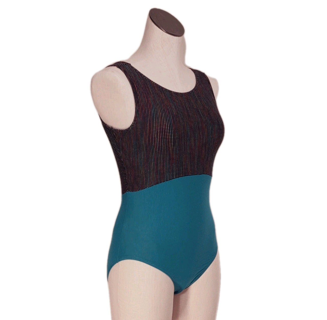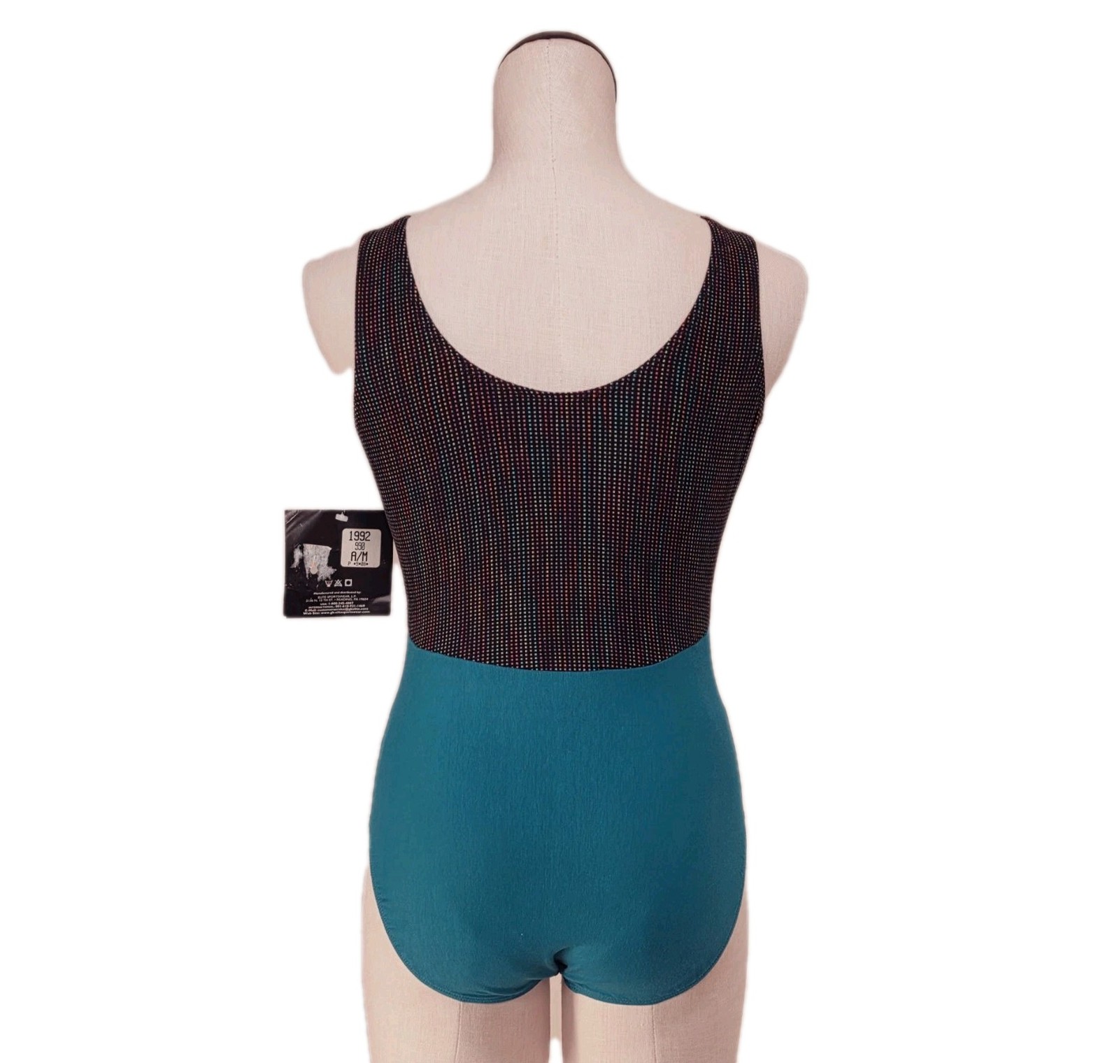 GK Elite VTG Rainbow Dotted Colorblock Tank Leotard Bodysuit Cotton AM Adult M