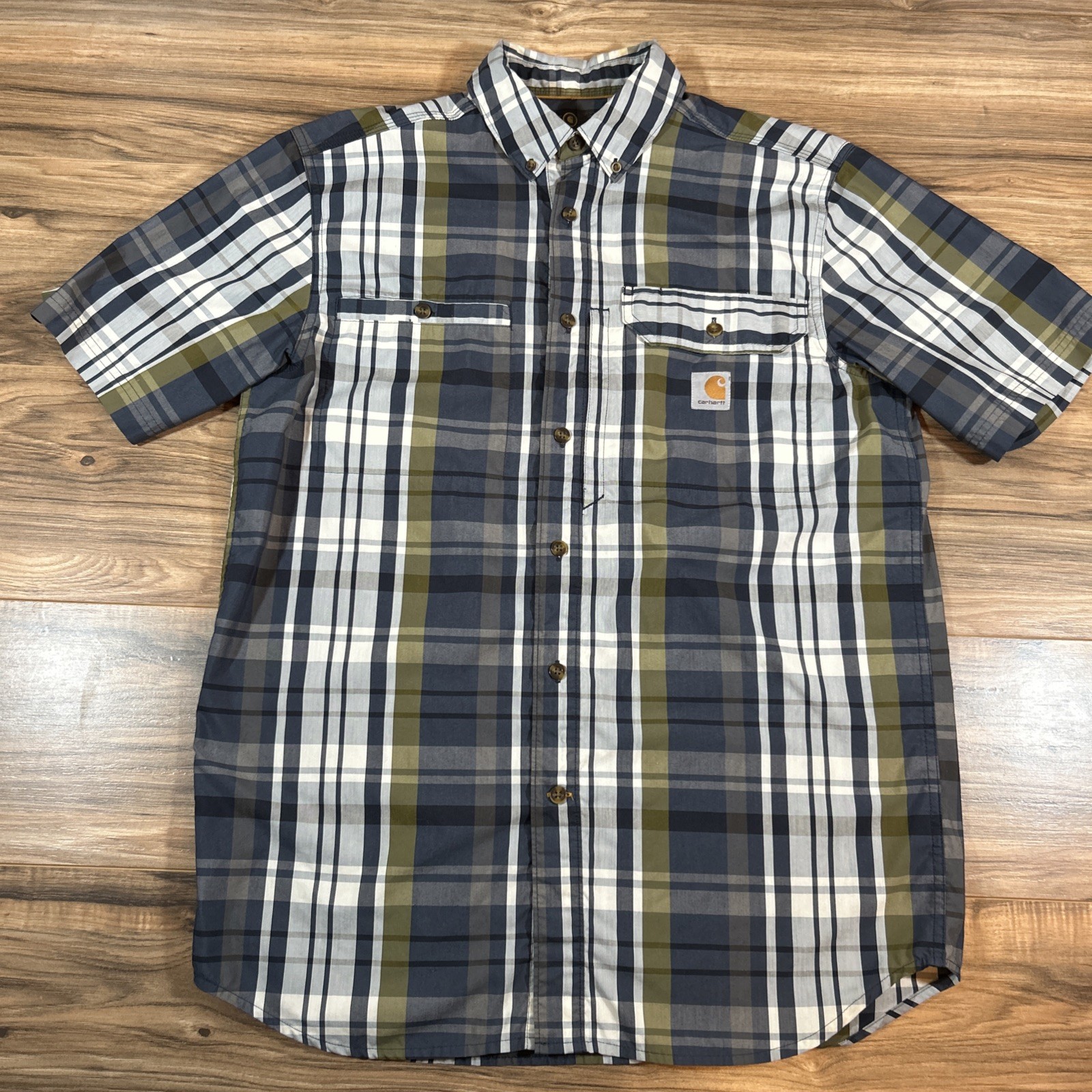 Carhartt Force Ridgefield Mens Med Plaid Short Sleeve Button Down Vented Shirt