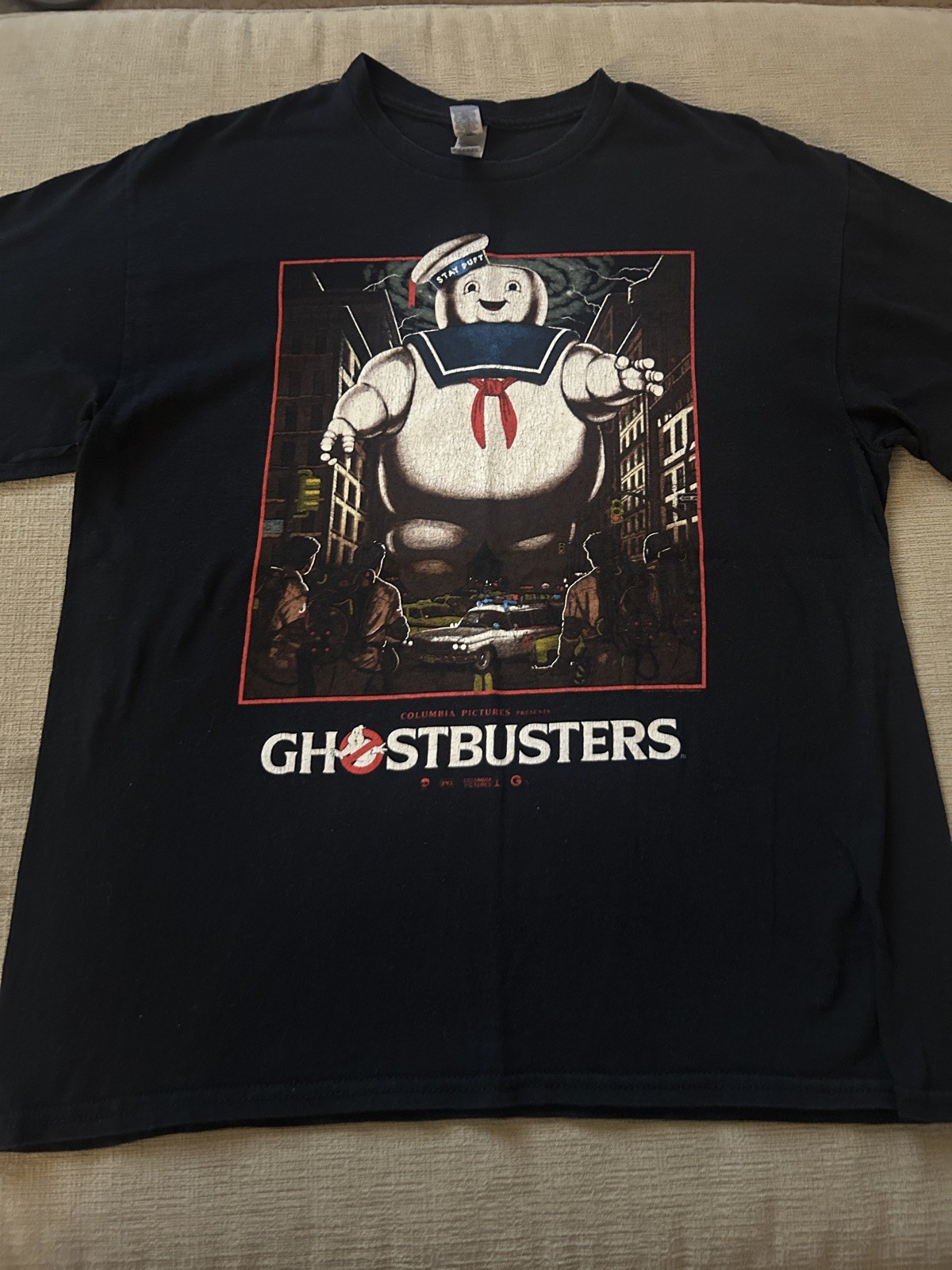 Ghostbusters Stay Puft Marshmallow Man Large Shirt rare BLACK HALLOWEEN SPOOKY