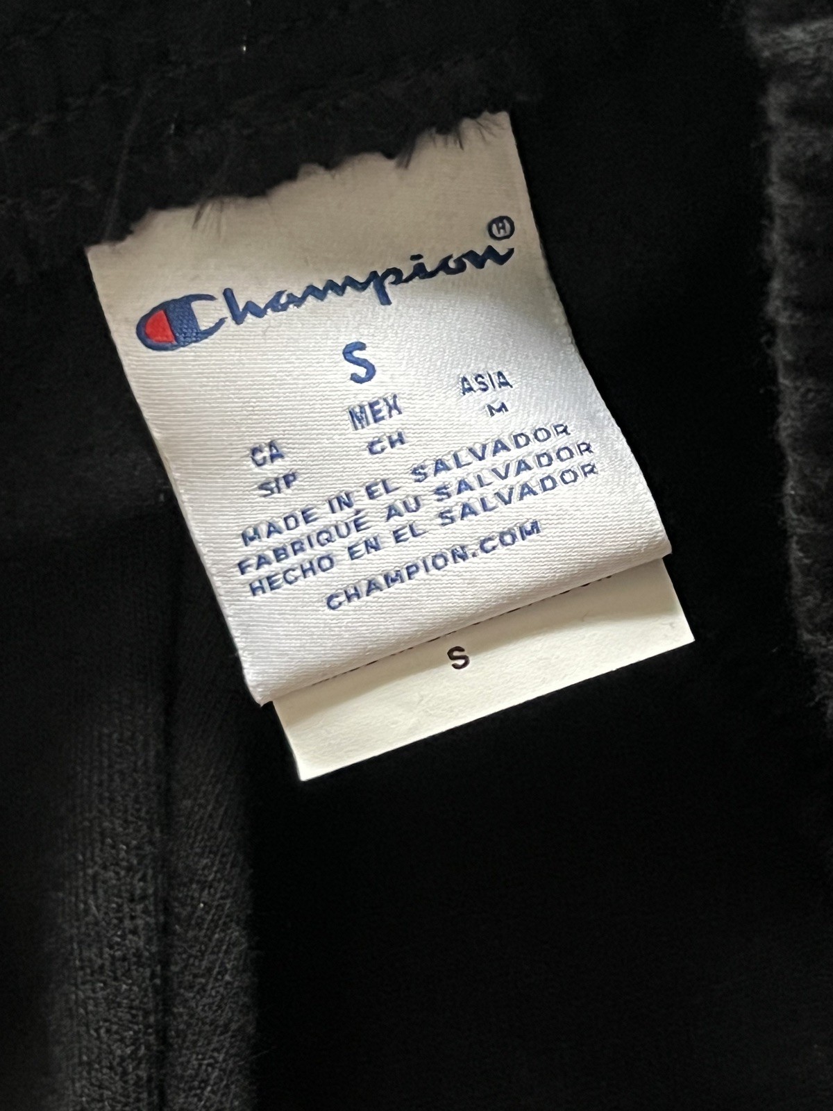 как выглядит Champion Adult Powerblend Open Bottom black Sweatpant w/ Pockets logo sz Small фото