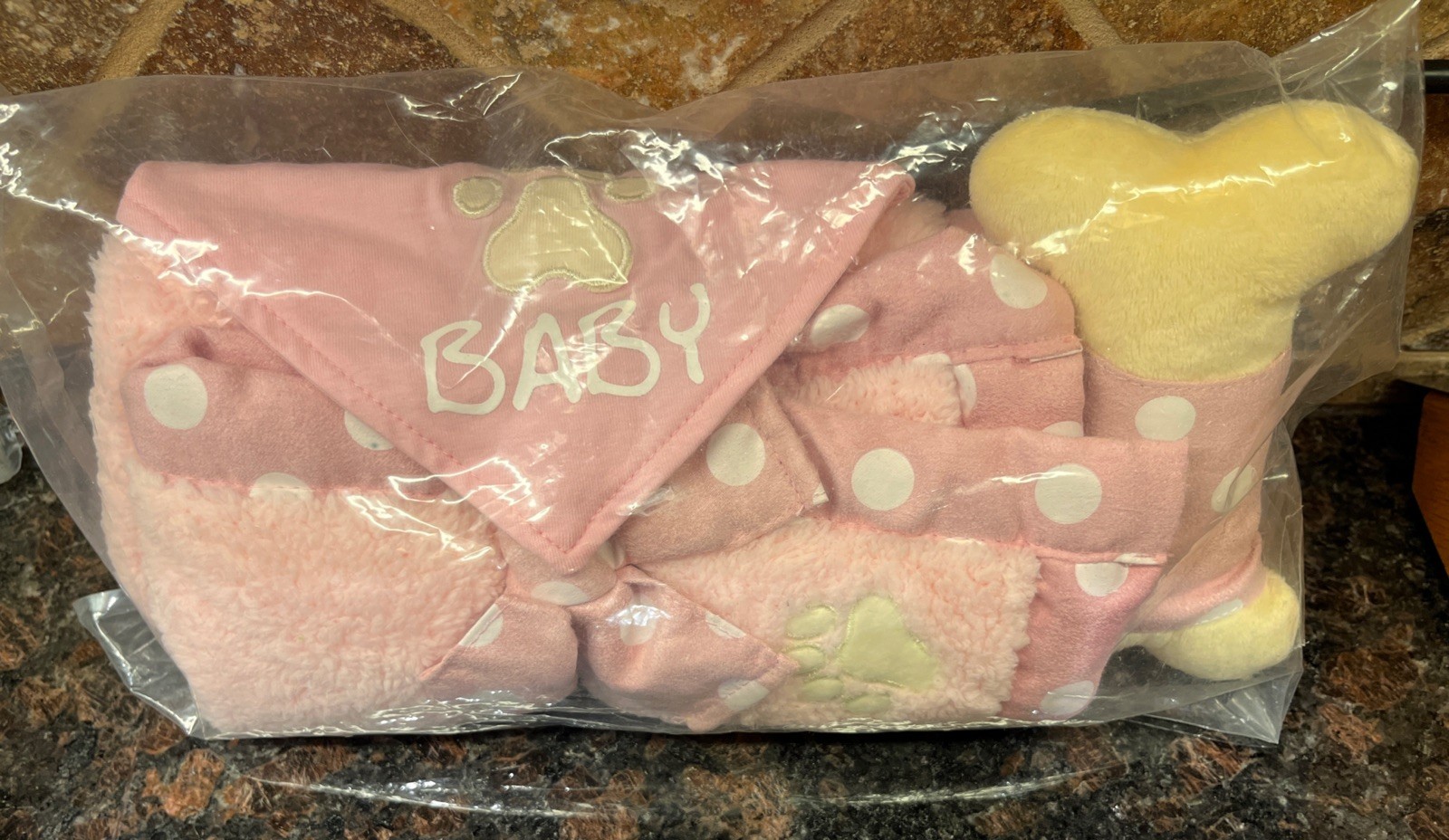 Puppy Dog Gift Set Blanket Toy Bone And Bandana. Pink Fleece. For New Puppy