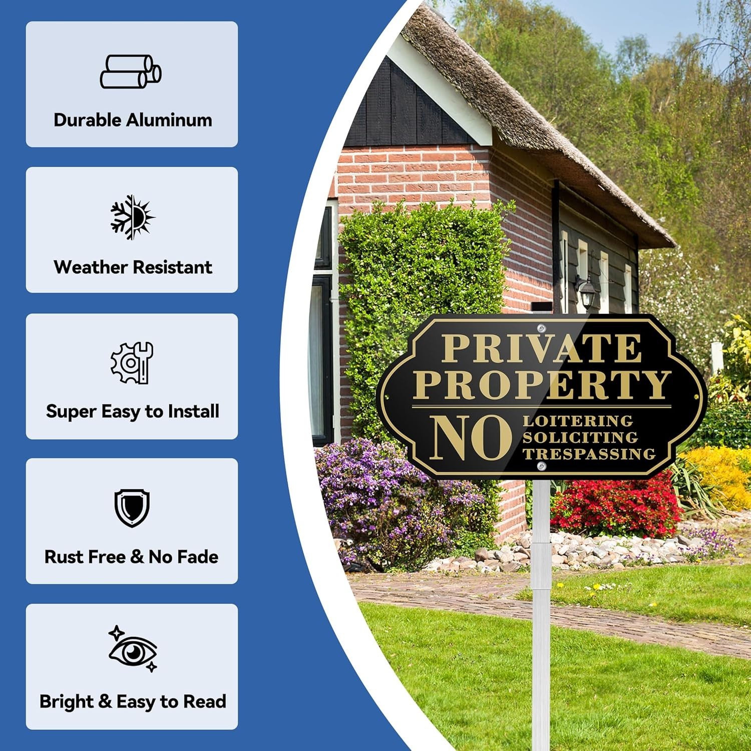 Private Property No Soliciting No Trespassing No Loitering 14x7 Sign, 28 Stake