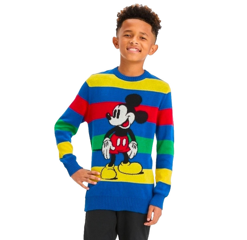 как выглядит Disney Boys Mickey Mouse Retro Striped Design Character Sweater - Medium 8/10 фото