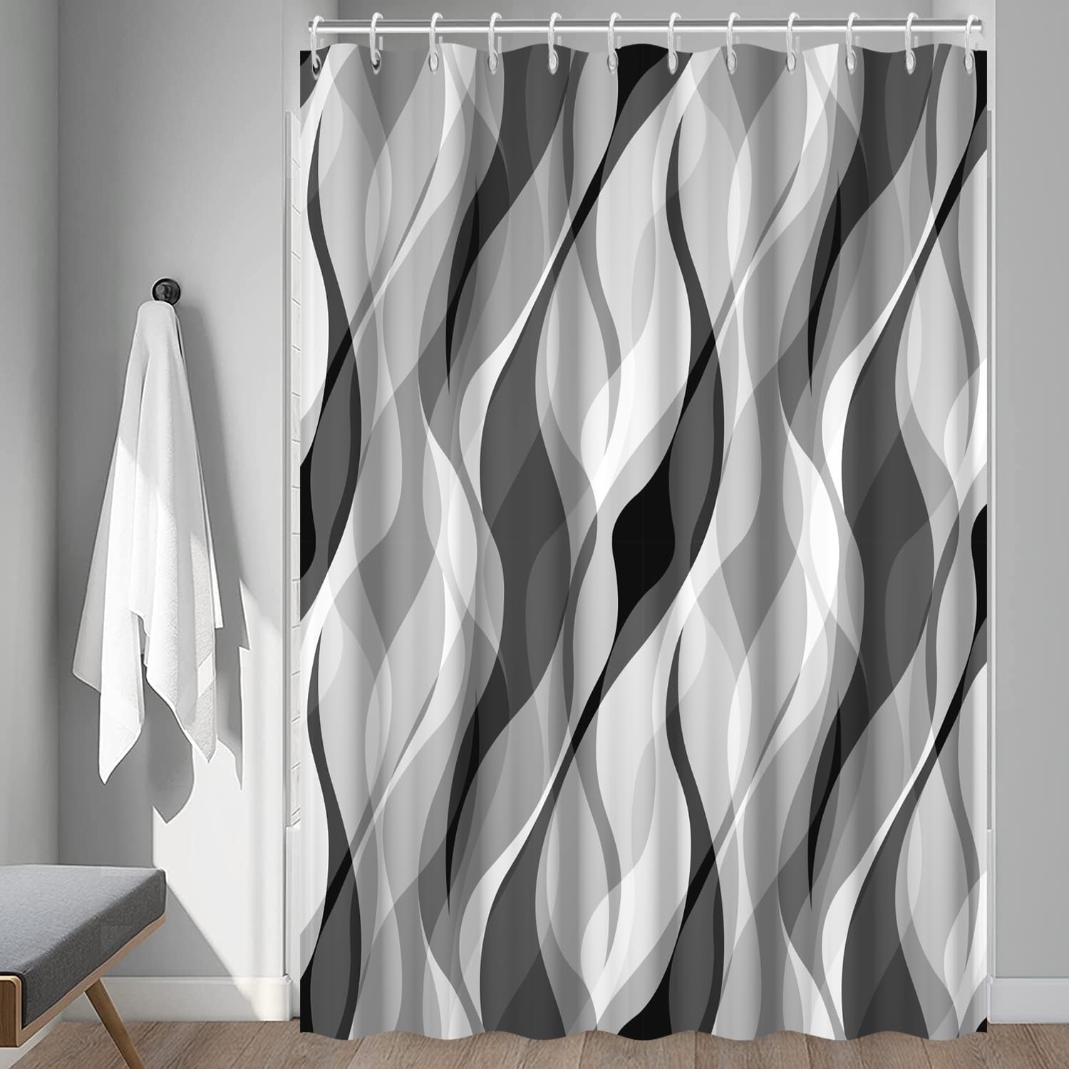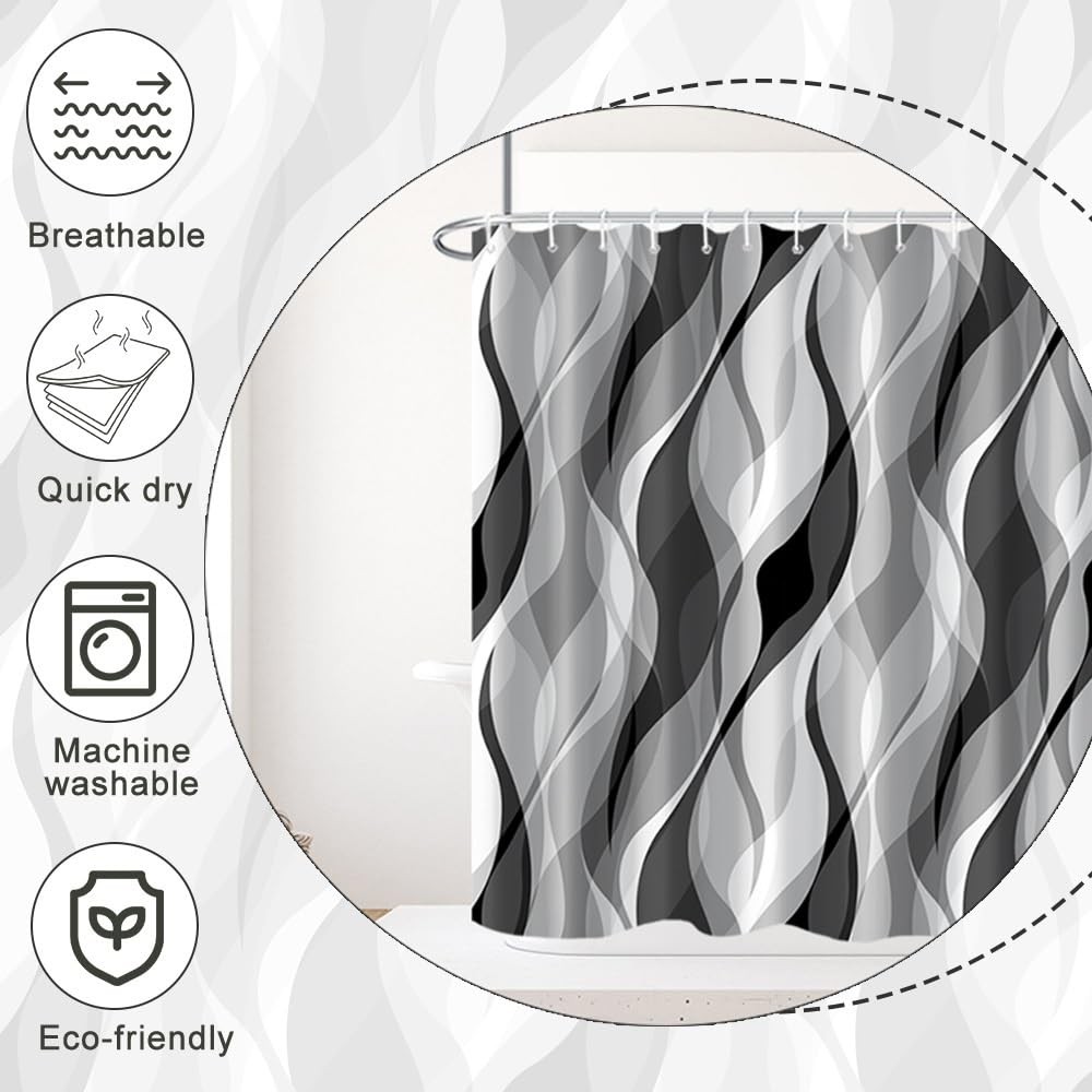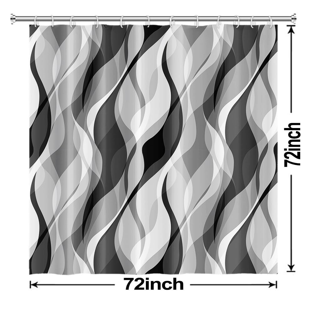 Grey Shower Curtain 72x72 inch Modern Abstract Black Grey Striped Pattern