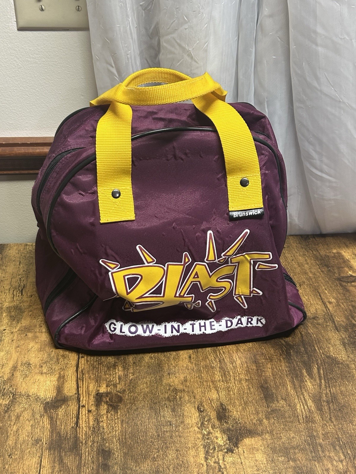 как выглядит Vtg Brunswick Axis 8.5lb Bowling Ball With Brunswick Bowling Bag purple Green фото