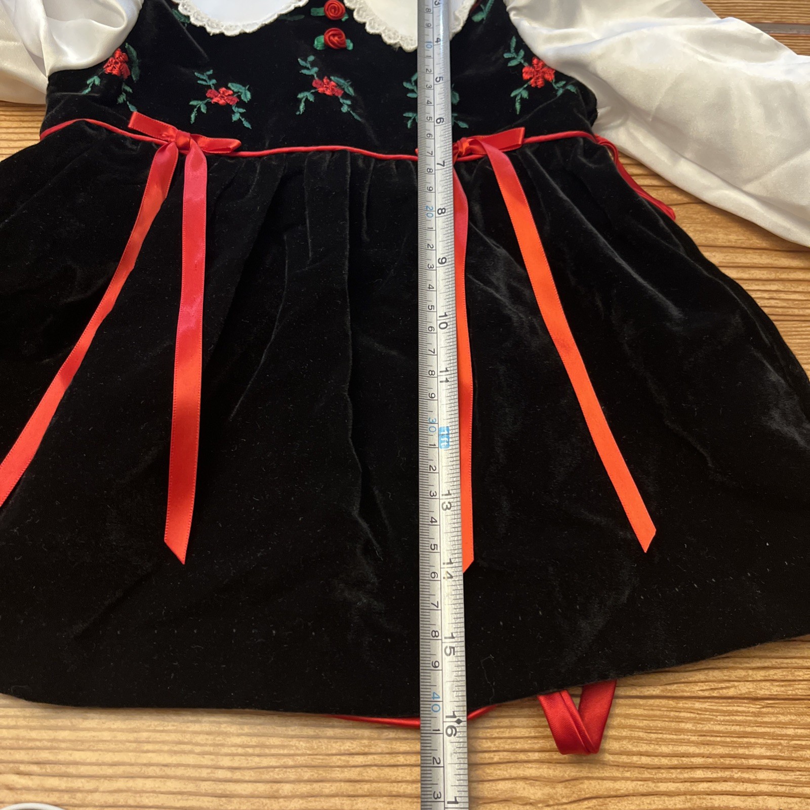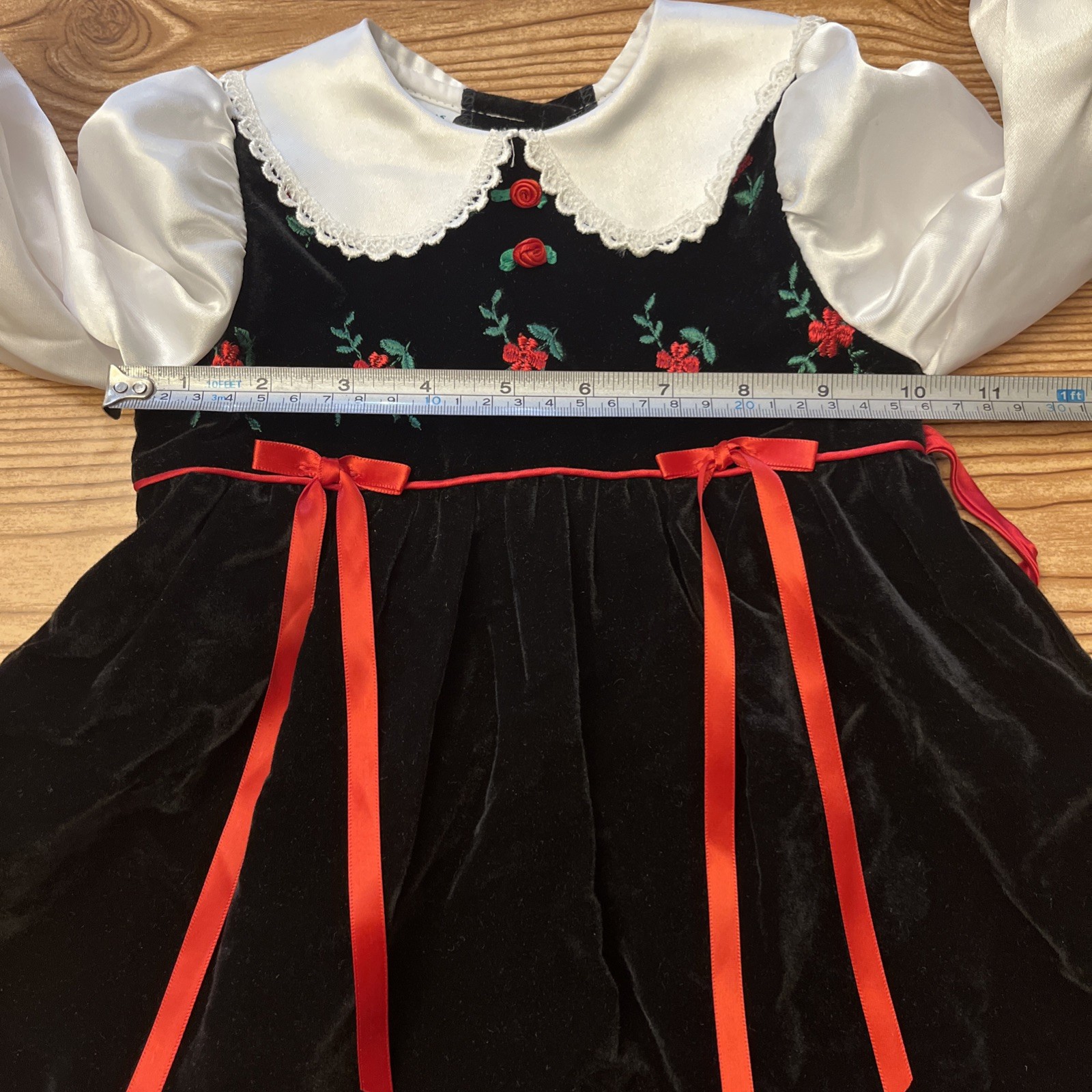 как выглядит Vtg Rare Editions Black Velvet Party Dress Size 3-6 Months  Bows Flowers READ фото