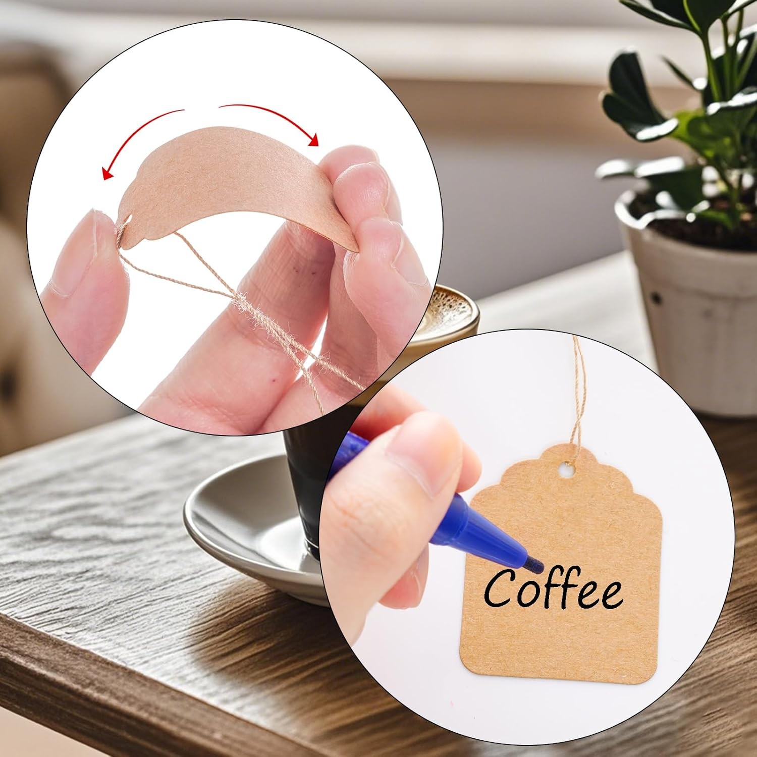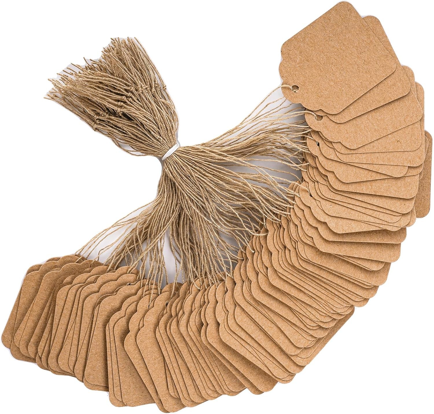 500 Pcs Kraft Paper Tags with String Attached 1.4 inches x 1.8 inches, Brown
