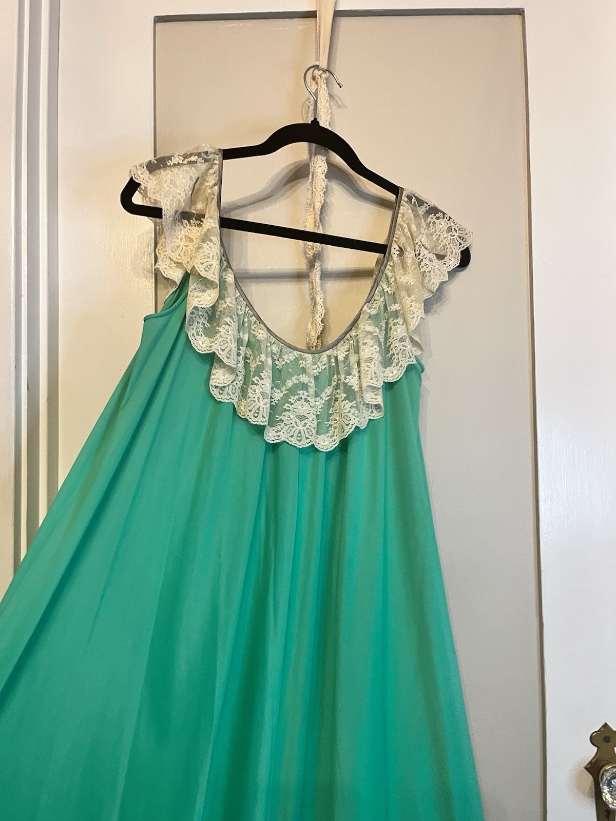 как выглядит Vtg 1960s Claire Sandra by Lucie Ann Nylon Lace Ruffle Long Nightgown Sz Small фото